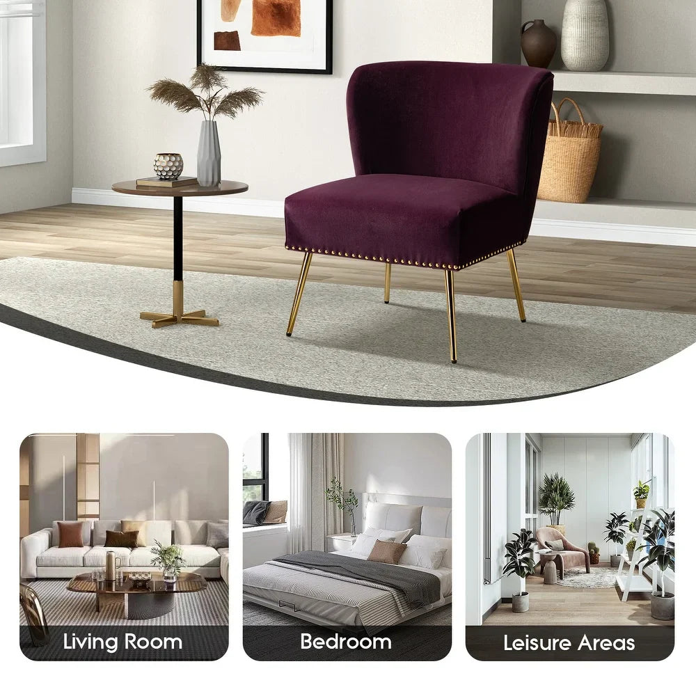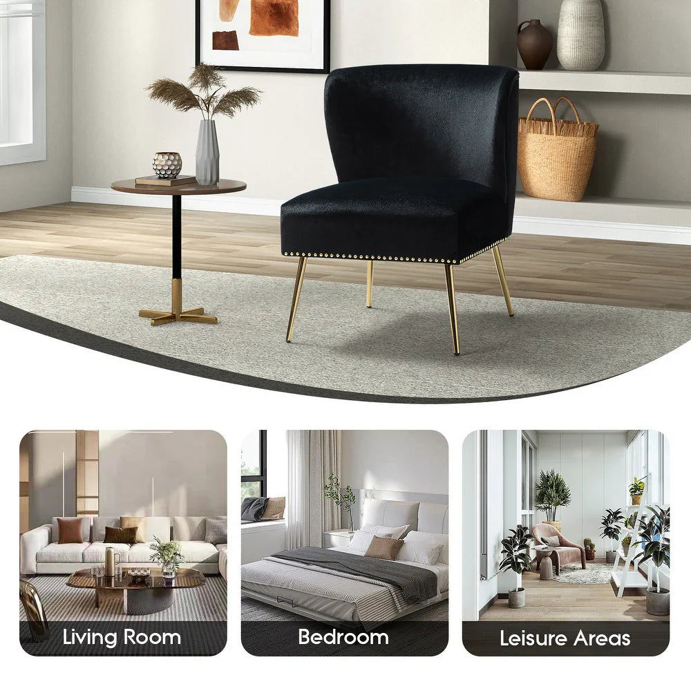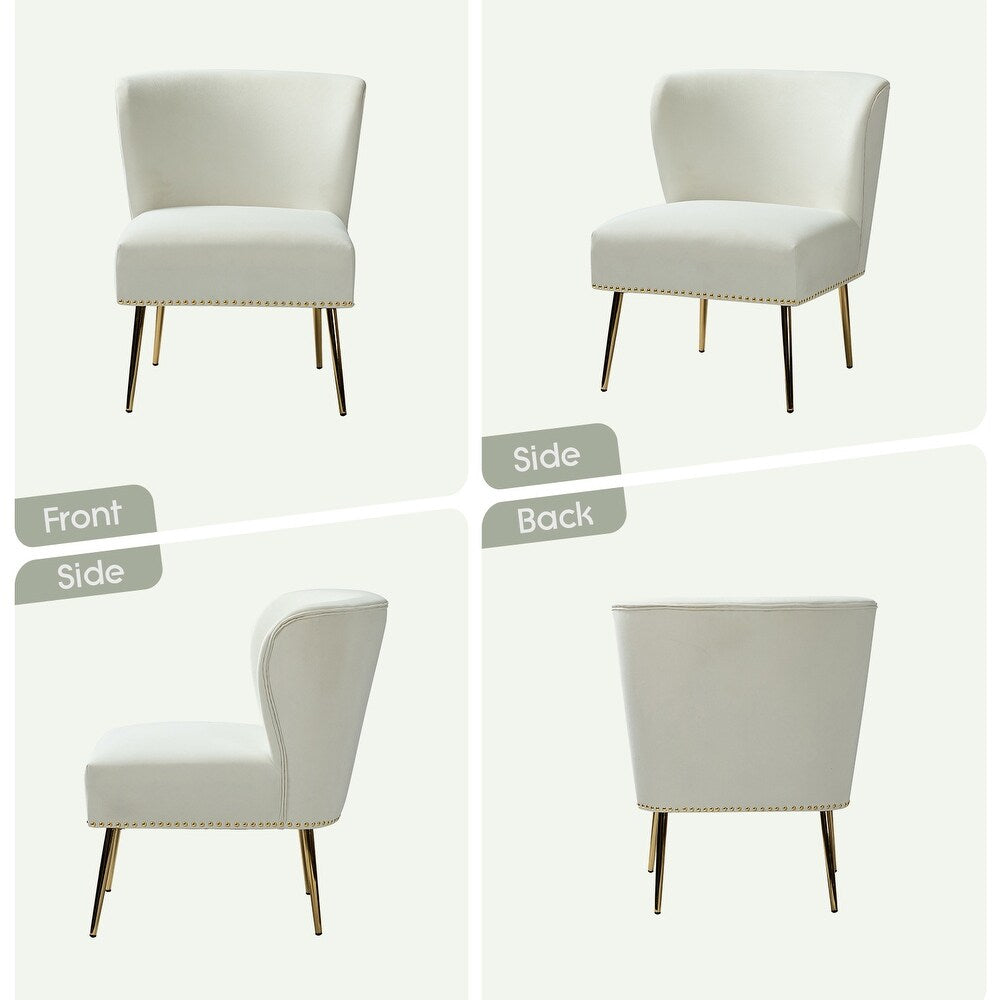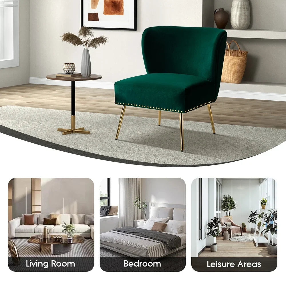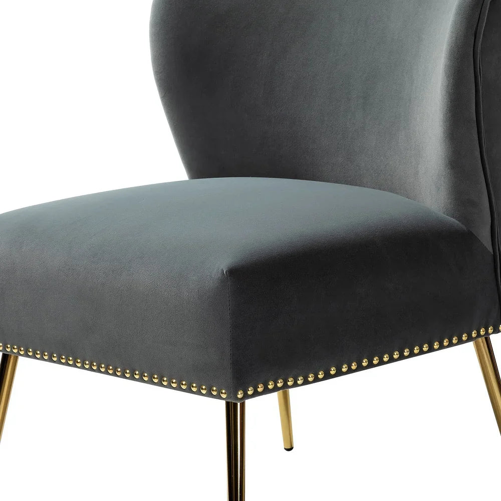 Add a touch of glam to your living room or bedroom with the Celtia Upholstered Vintage Accent Chairs with Nailhead Trim. These chairs feature a contemporary and classic style with soft velvet fabric and glam nailhead trim. The high-density foam filling with a solid and manufactured wood frame provides comfort and support, while the slender polished golden metal legs bring modern design to the timeless fashion of this piece. These chairs are perfect for any space from living room to office room to bedroom.