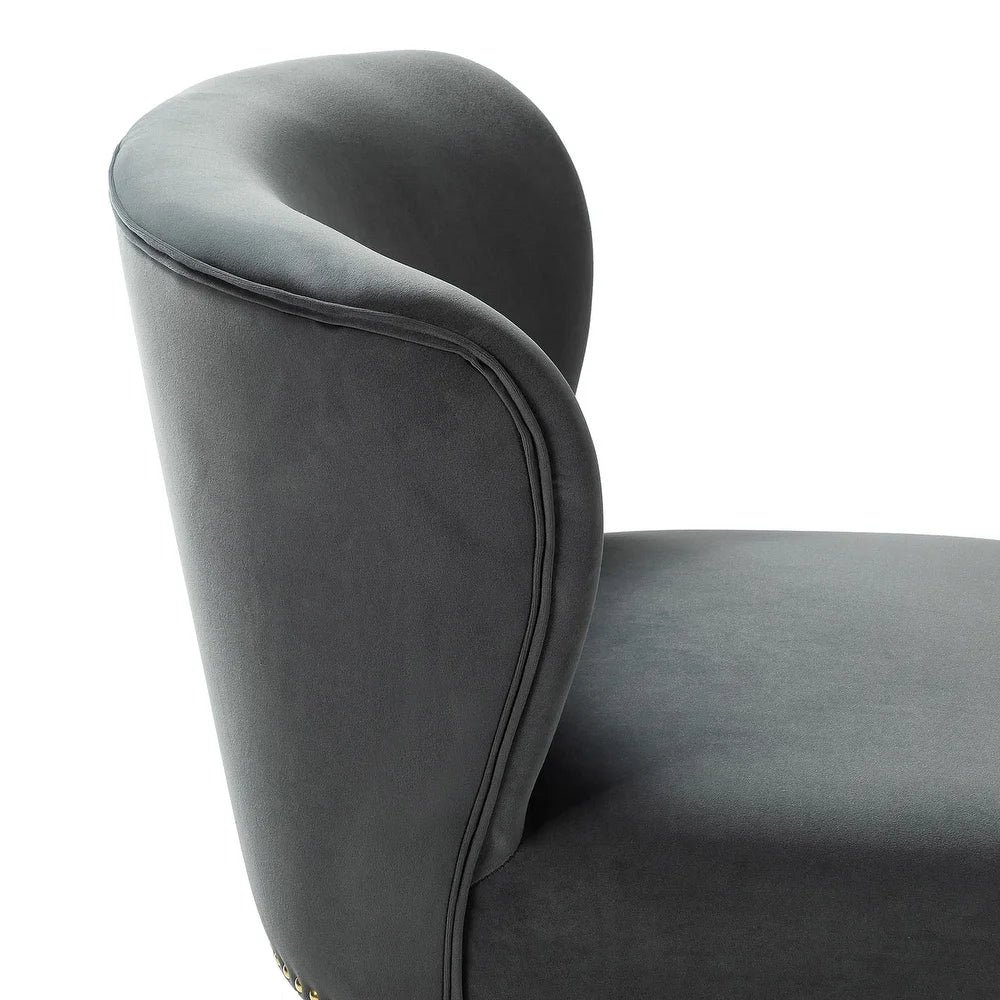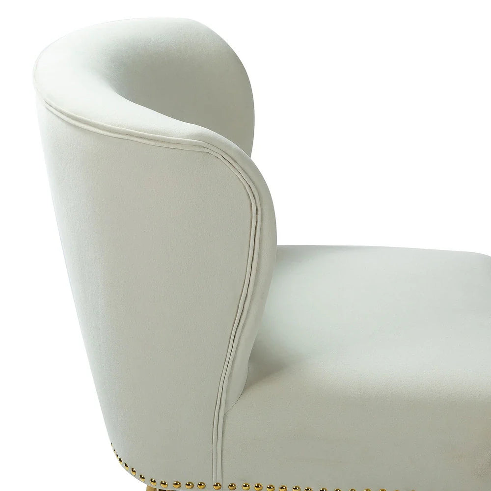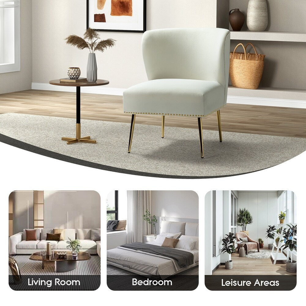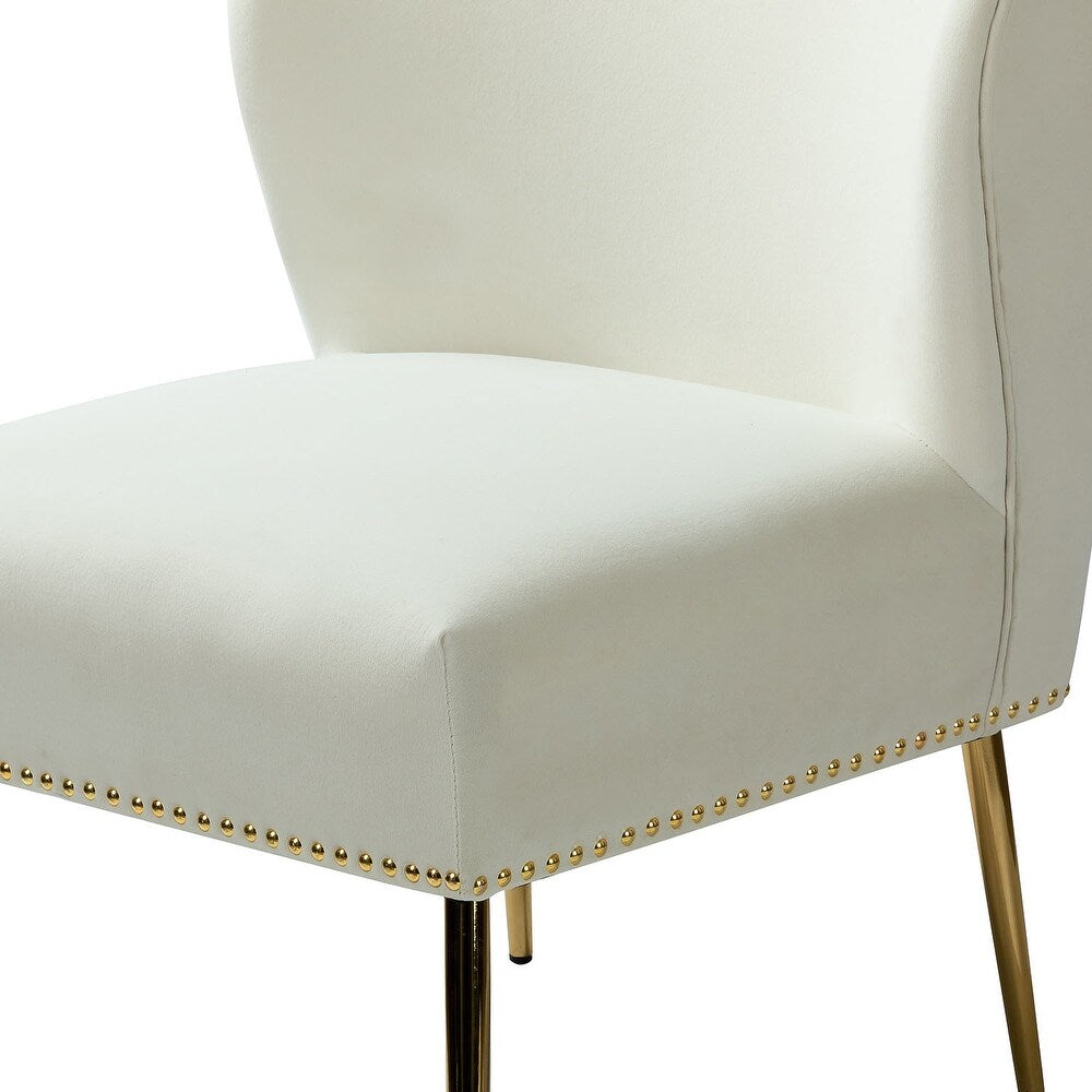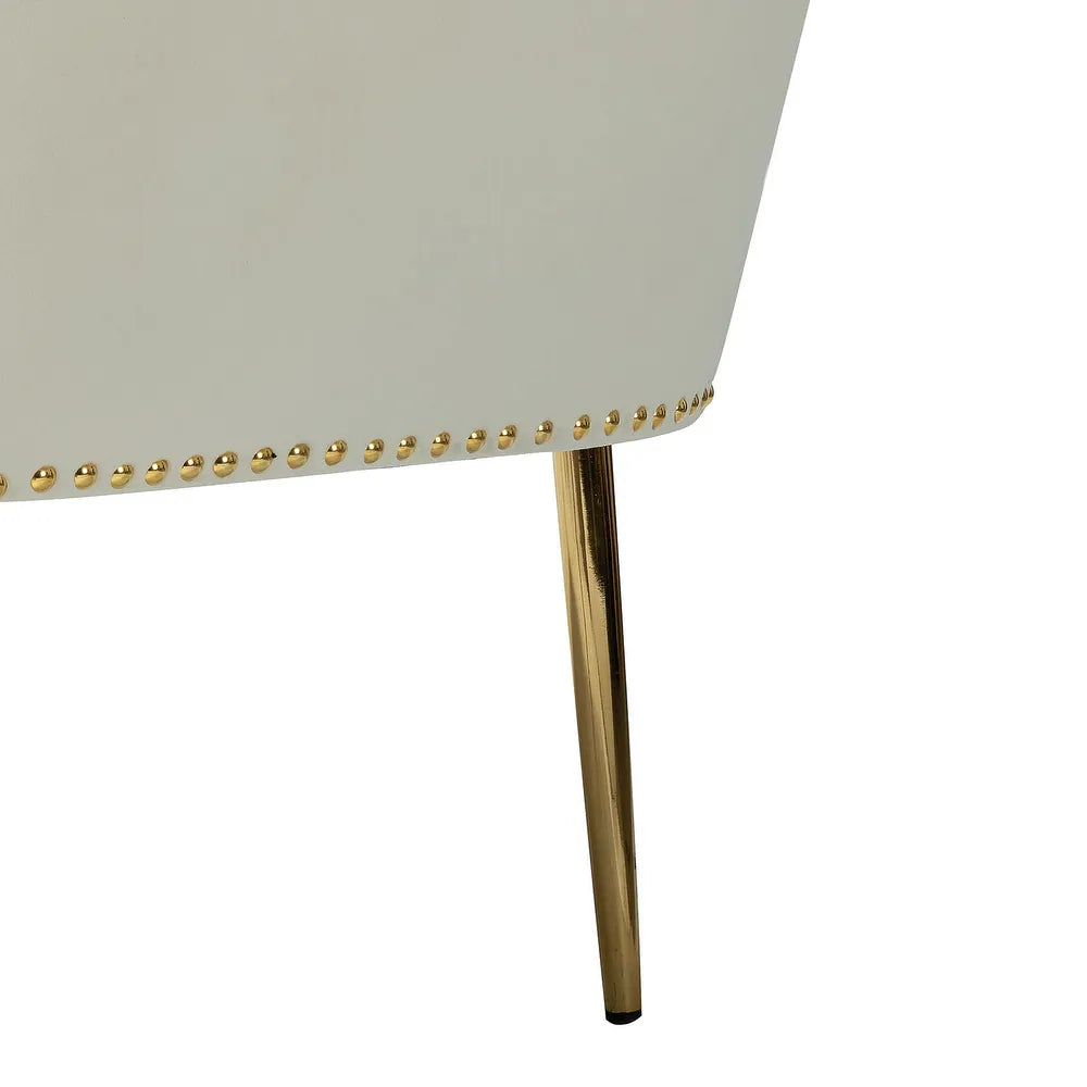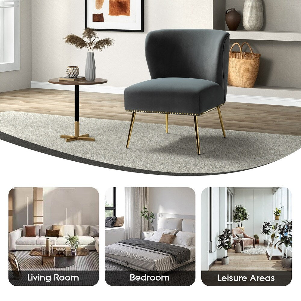 Add a touch of glam to your living room or bedroom with the Celtia Upholstered Vintage Accent Chairs with Nailhead Trim. These chairs feature a contemporary and classic style with soft velvet fabric and glam nailhead trim. The high-density foam filling with a solid and manufactured wood frame provides comfort and support, while the slender polished golden metal legs bring modern design to the timeless fashion of this piece. These chairs are perfect for any space from living room to office room to bedroom.