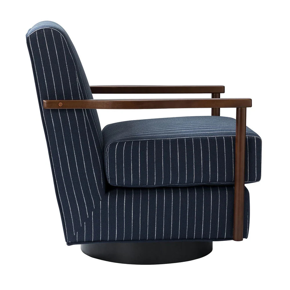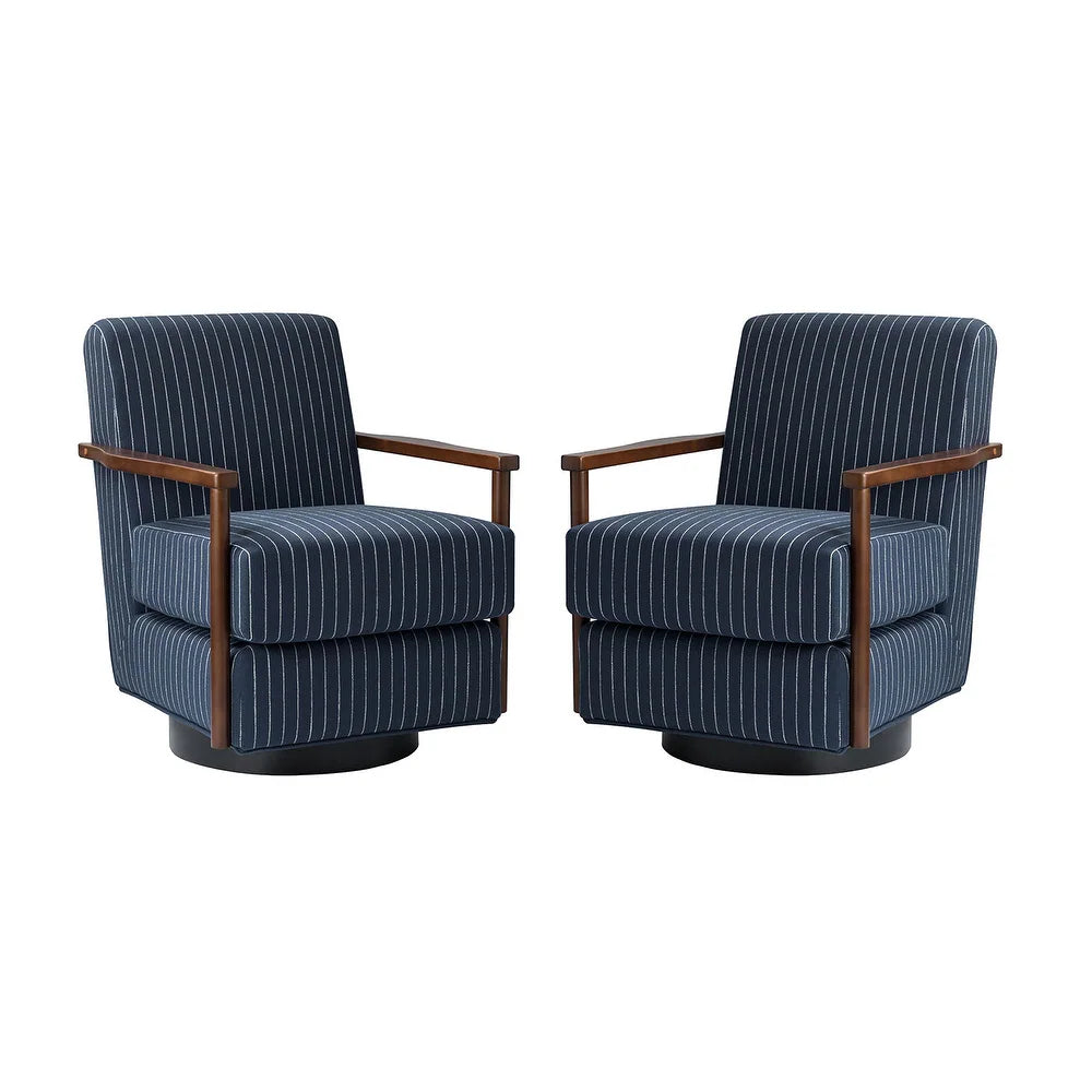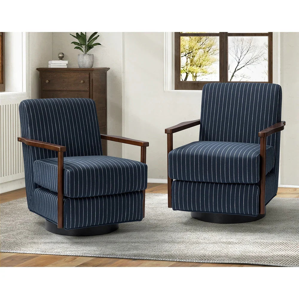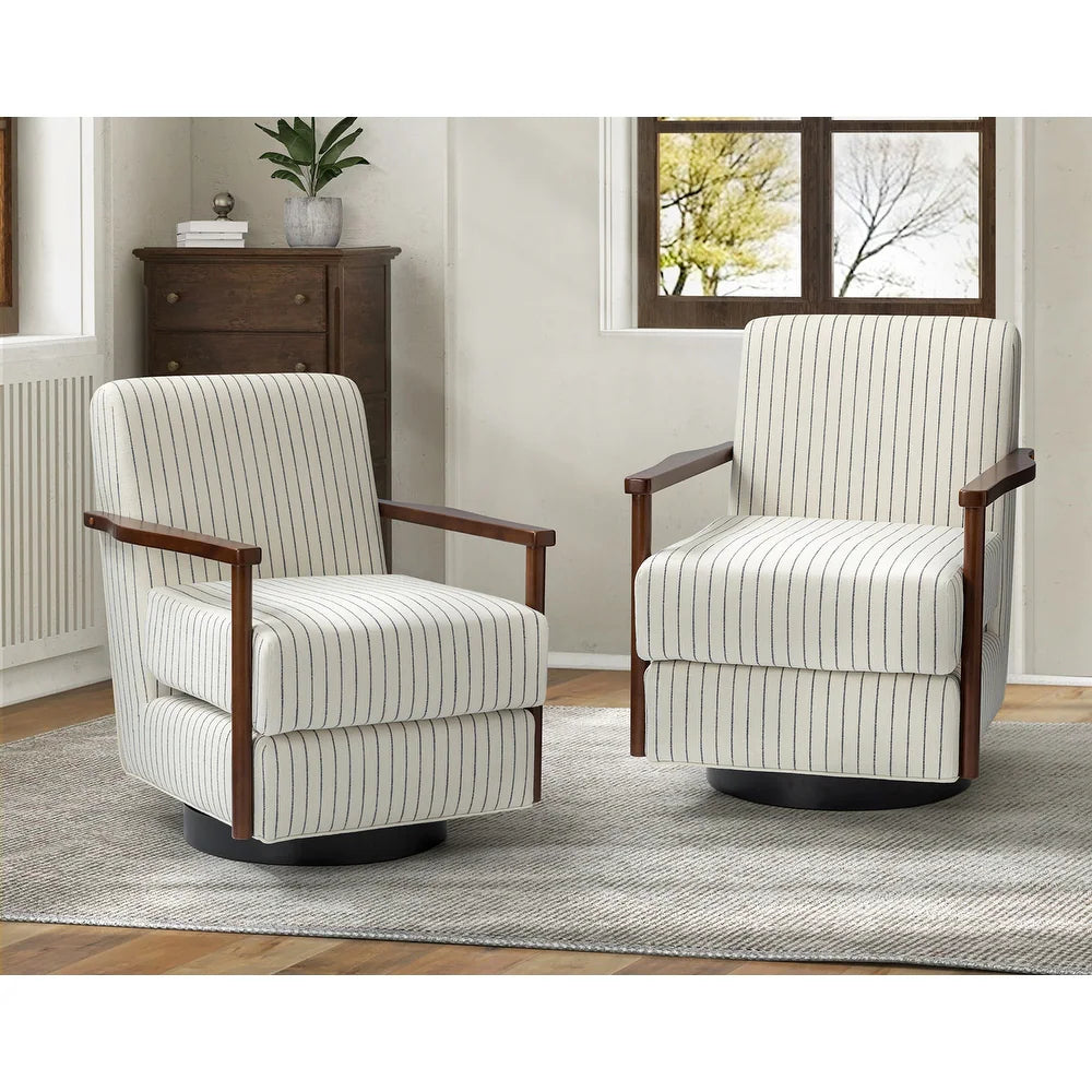 Christoph Farmhouse Striped Swivel Armchair With Solid Wooden Armrests Set Of 2