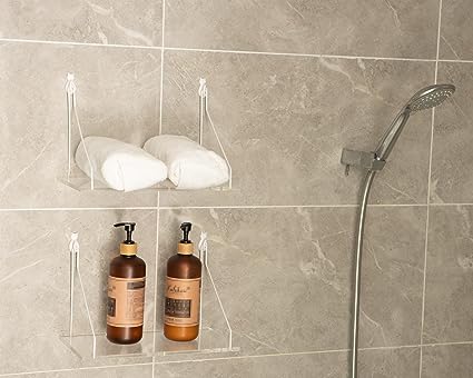- 【Bathroom shelves wall mounted】Floating bathroom shelves easy To clean, Quit going through the trouble of vigorously dusting the shelves. Our acrylic organizers shine with just a quick wipe of microfiber cloth. Suit for adding additional shelving space to store and organize small items or clutter. If you have many beauty products and limited storage space in your bathroom. In the bathroom you can put toiletries, towels. Perfect for bathroom shelves over toilet and bathroom decor!