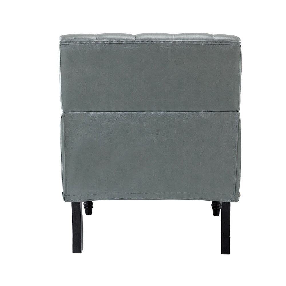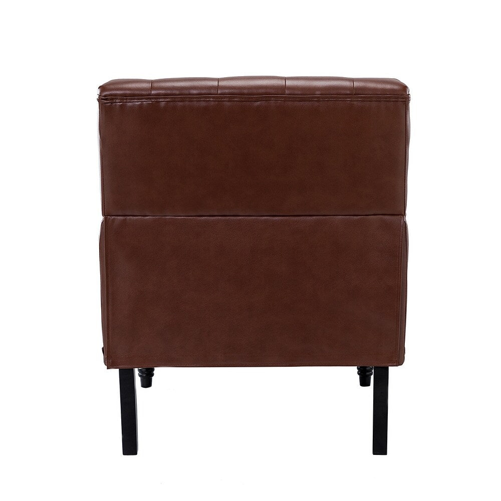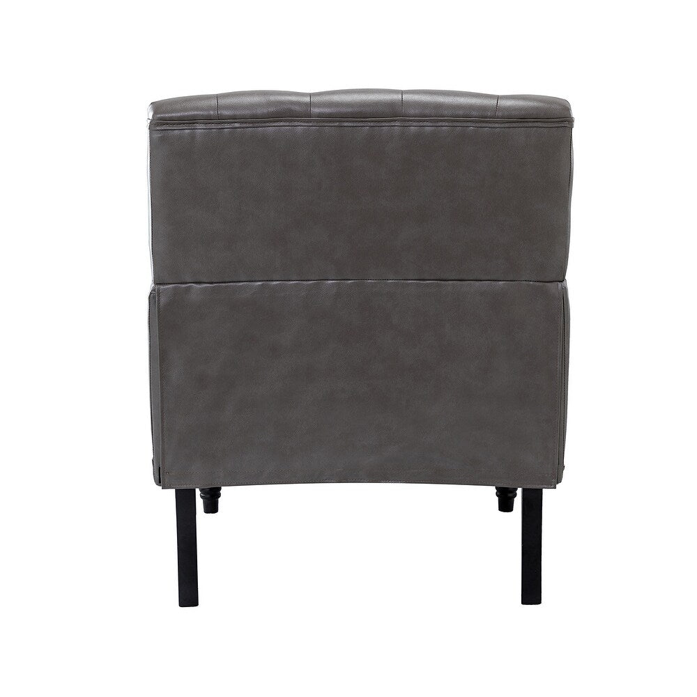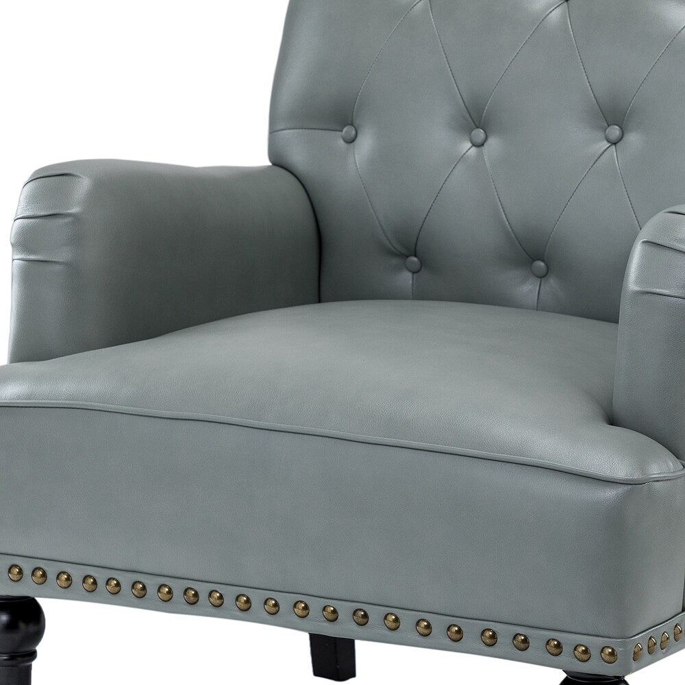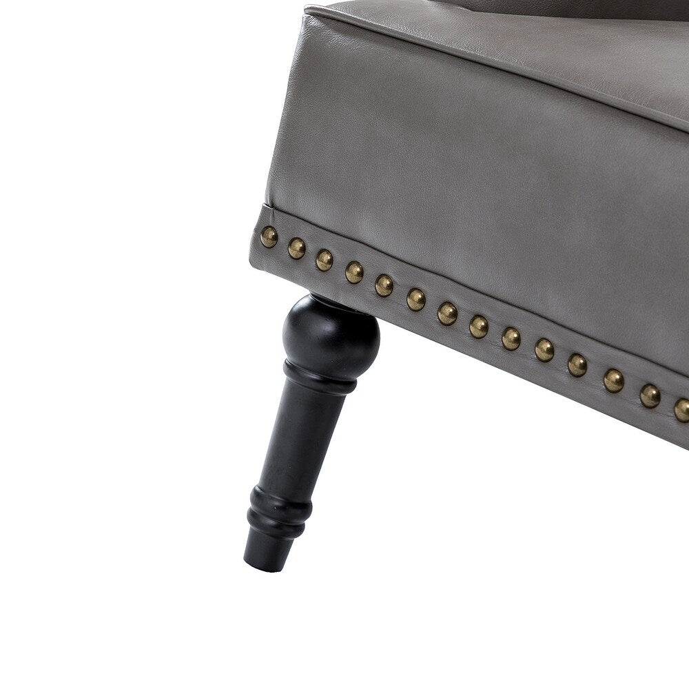 Unique style and classic design combine in this inviting armchair. It features a sturdy wood frame, wrapped in PU upholstery with a button-tufted design, elegantly carved front legs, and simple back legs that offer a visual variation. The foam-filled back provides extra support, while the nailhead trim adds a dose of vintage design to it. It is suitable for most of your daily scenarios such as study room, bedroom, and living room. Whether you're enjoying quality family time or entertaining guests, this armchair will extend an open invitation for everyone to relax.