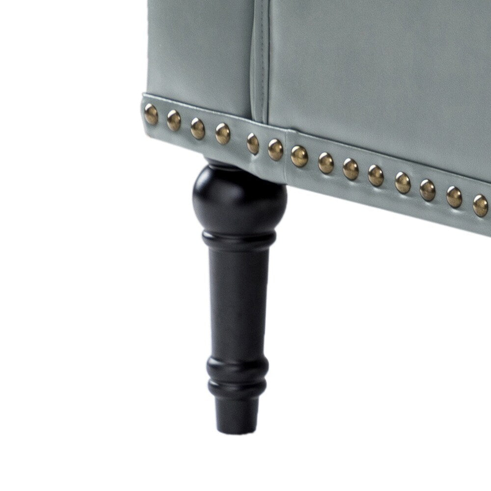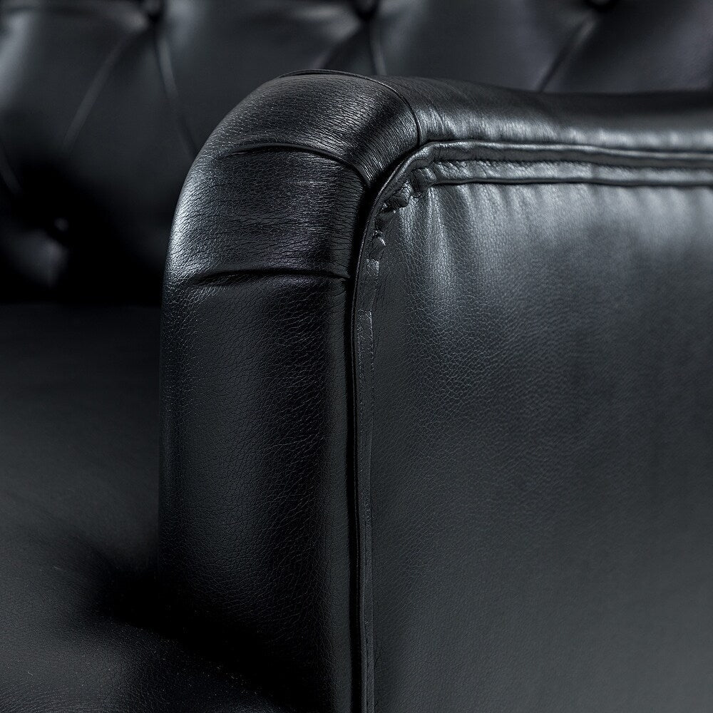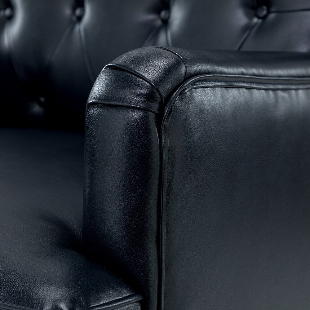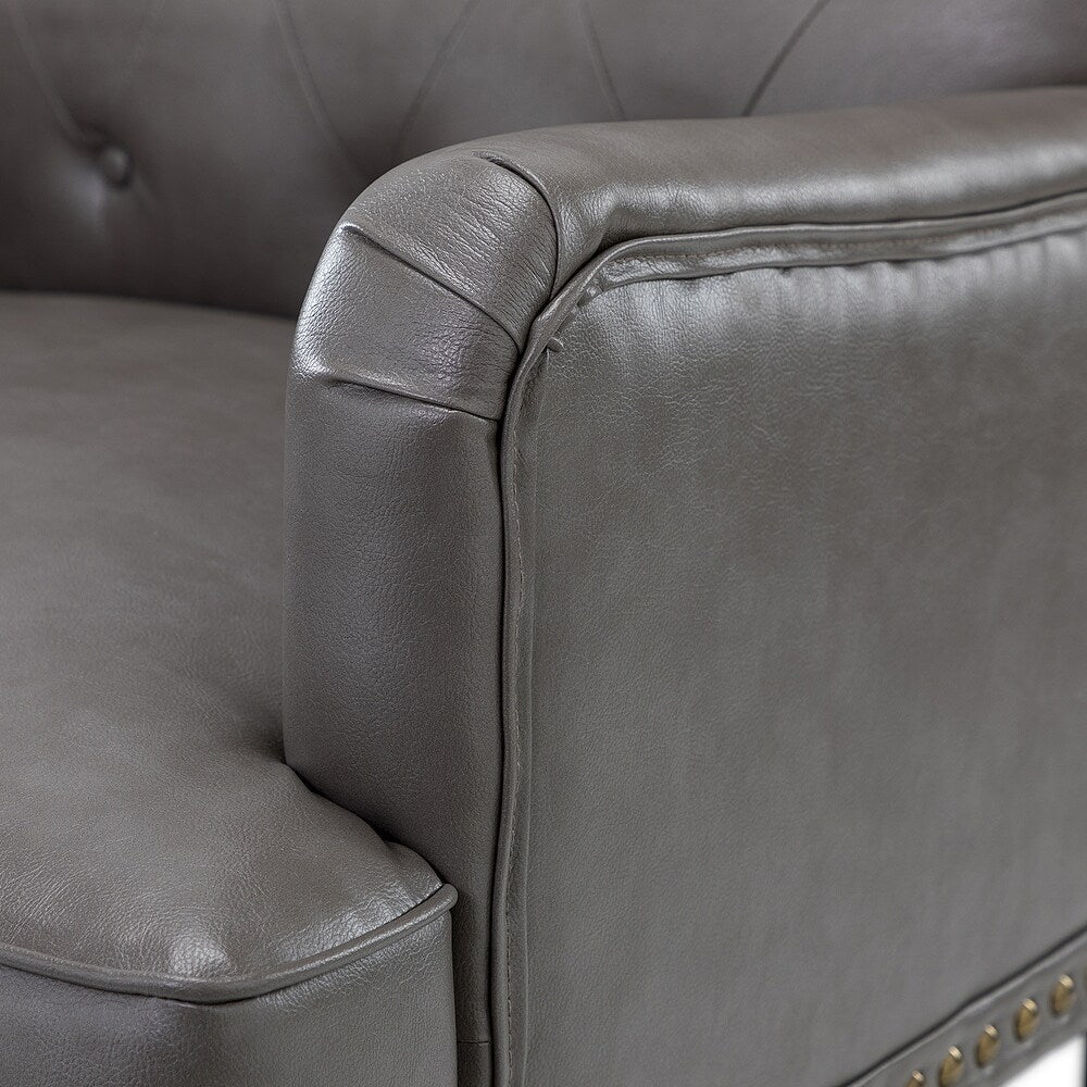 Unique style and classic design combine in this inviting armchair. It features a sturdy wood frame, wrapped in PU upholstery with a button-tufted design, elegantly carved front legs, and simple back legs that offer a visual variation. The foam-filled back provides extra support, while the nailhead trim adds a dose of vintage design to it. It is suitable for most of your daily scenarios such as study room, bedroom, and living room. Whether you're enjoying quality family time or entertaining guests, this armchair will extend an open invitation for everyone to relax.