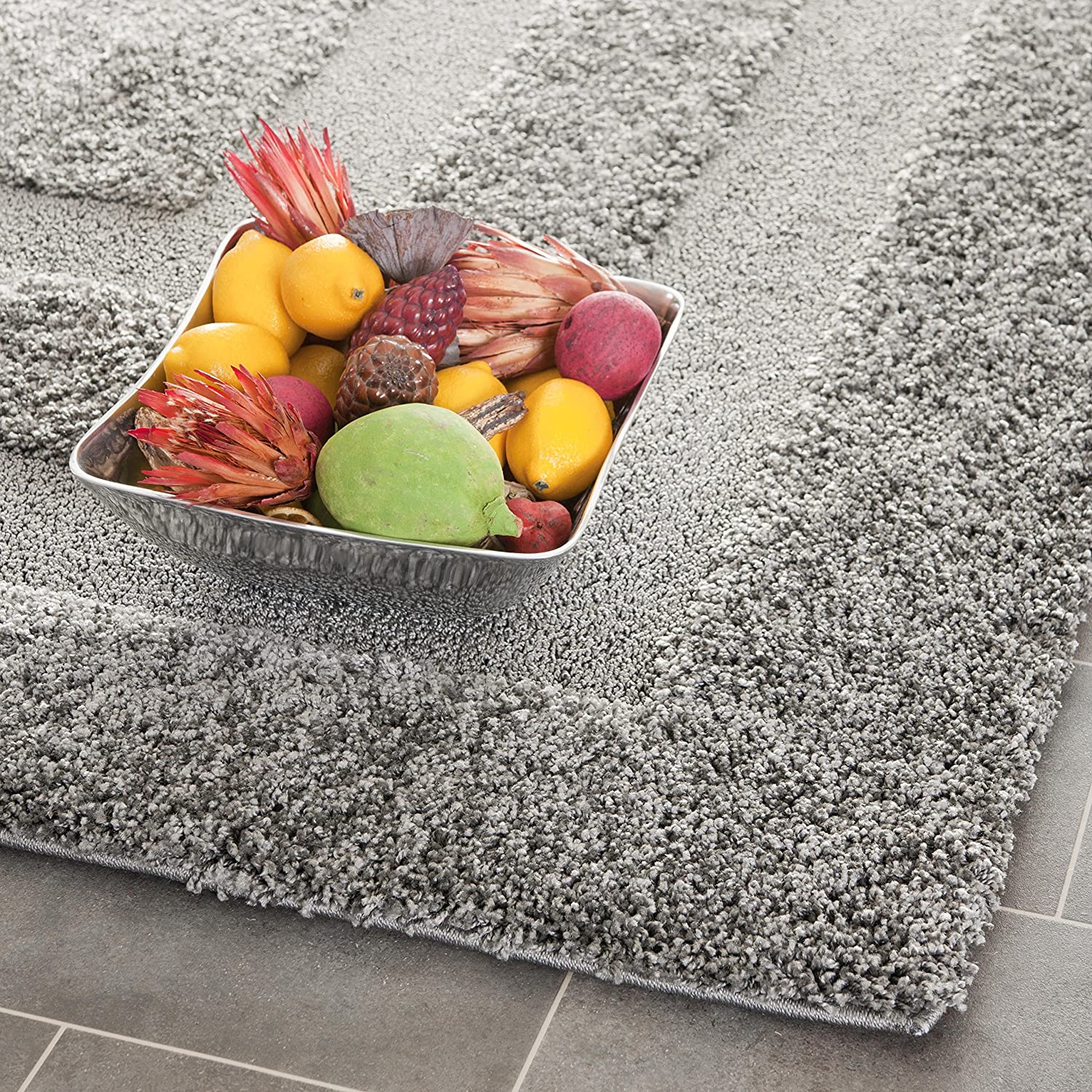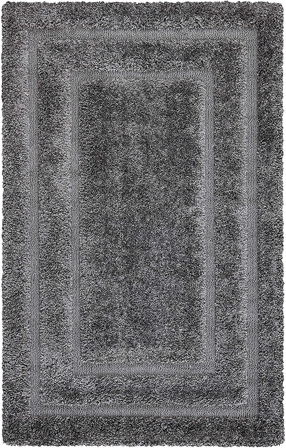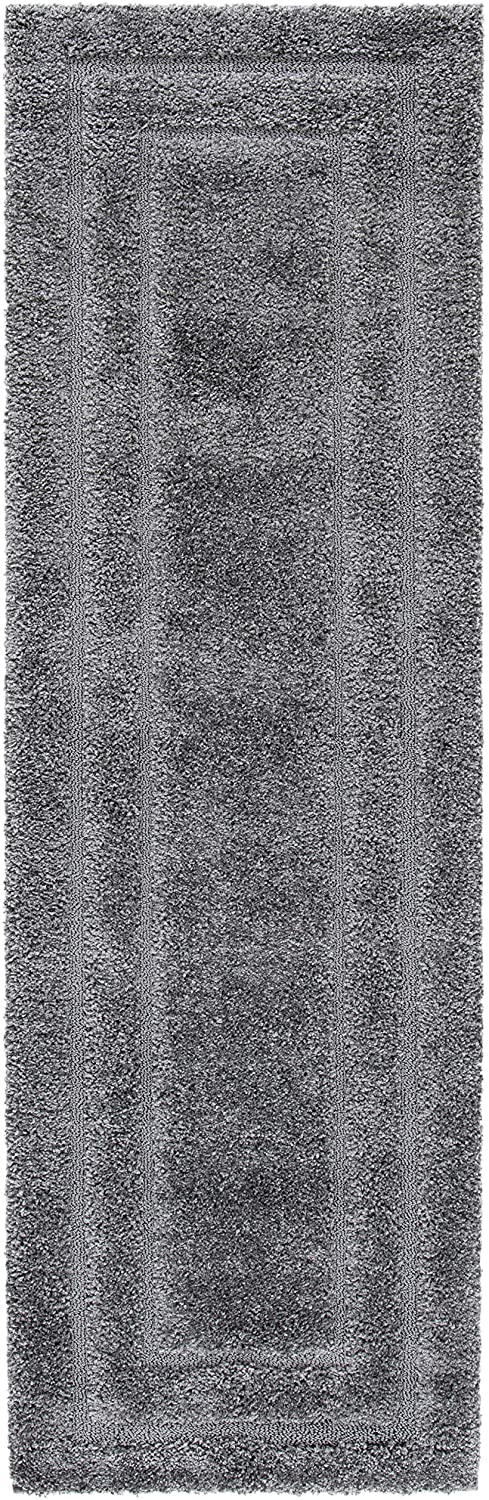 Grey Box Border Textured Thick Plush Shag Area Rug