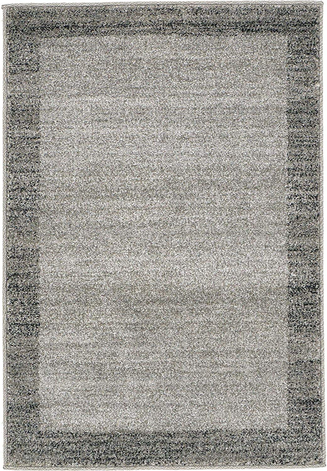 Contemporary Bordered Soft Light Gray Area Rug