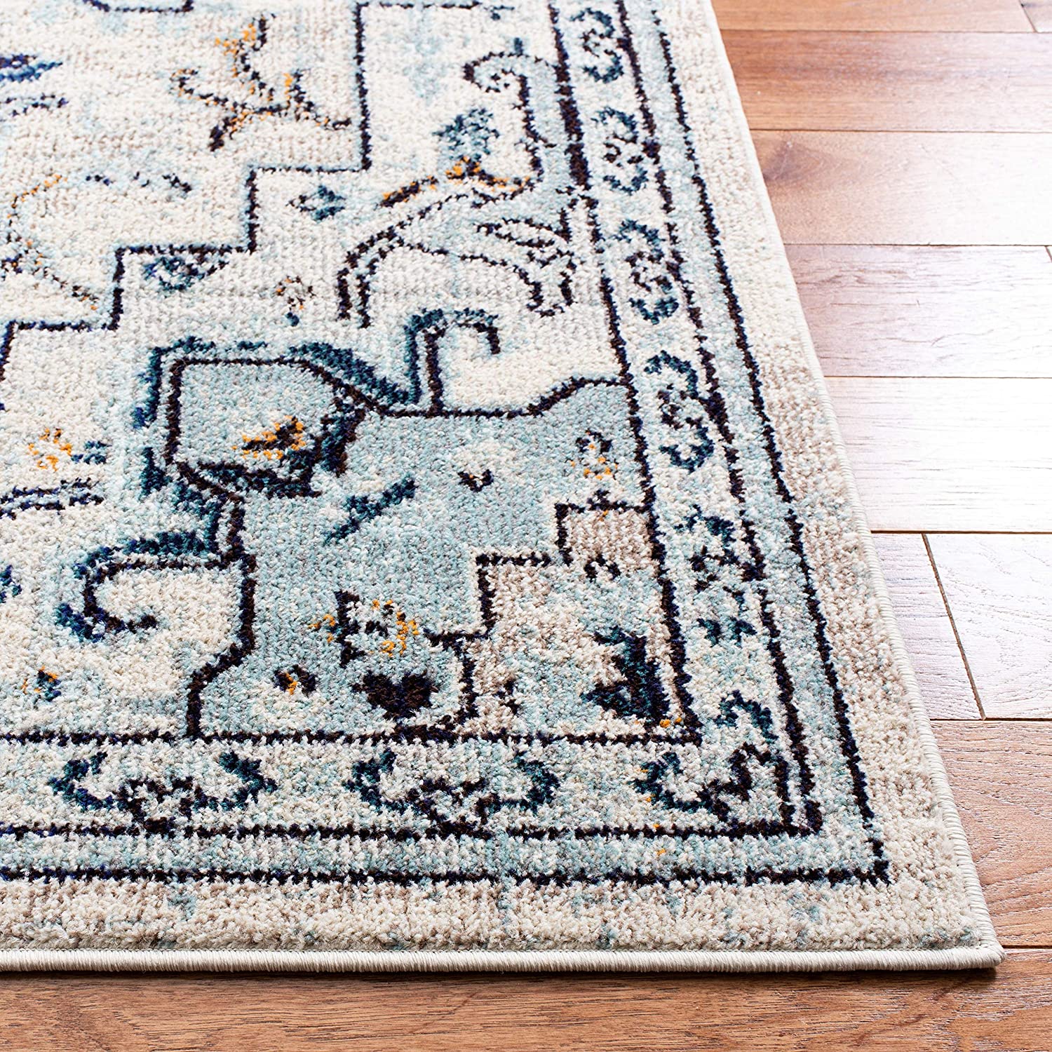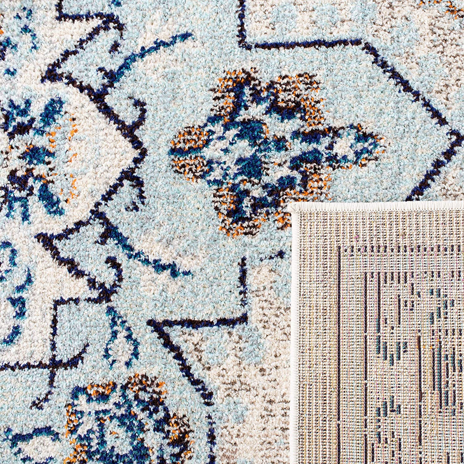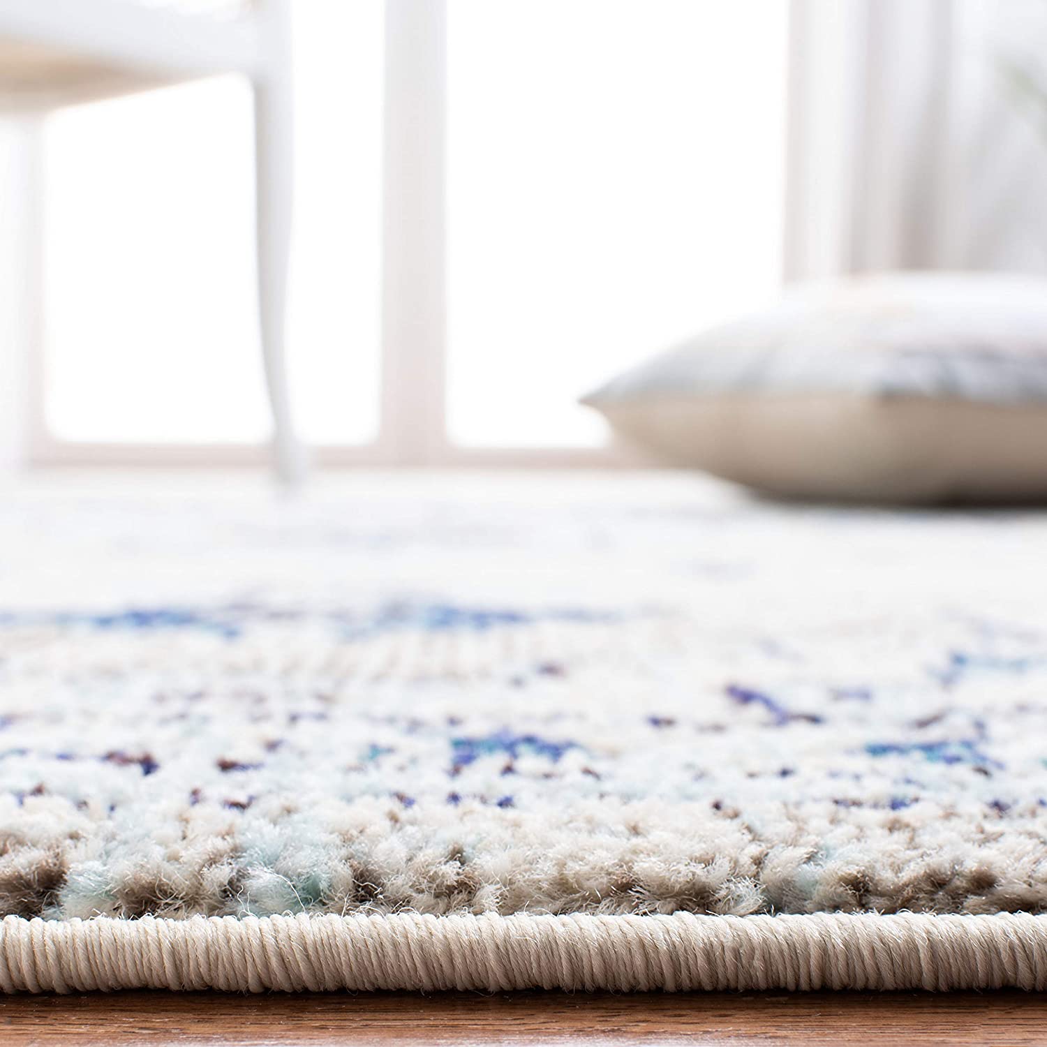 Boho Chic Medallion Distressed Soft Area Rug, Ivory / Light Blue