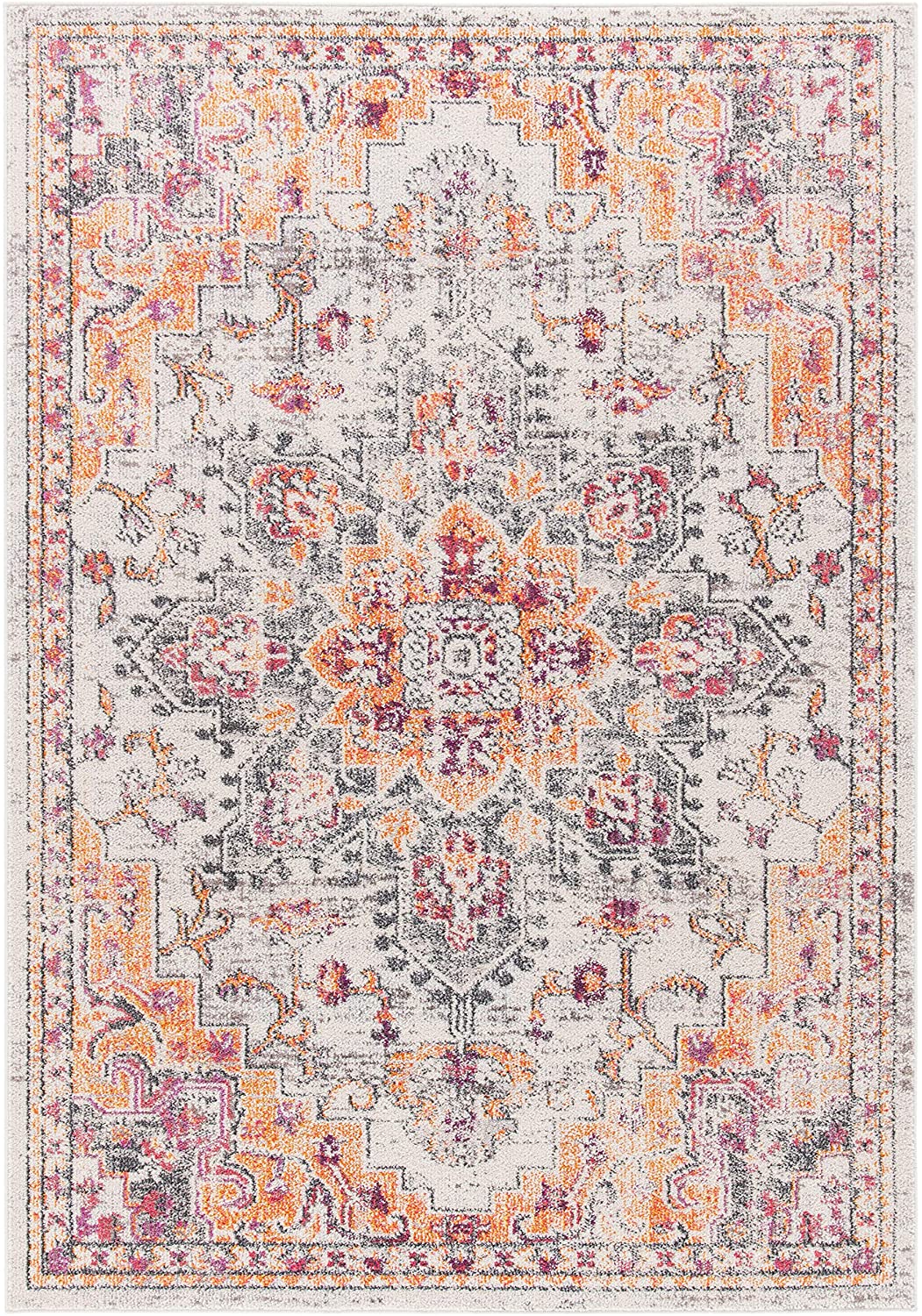 Boho Chic Medallion Distressed Soft Area Rug, Beige / Orange
