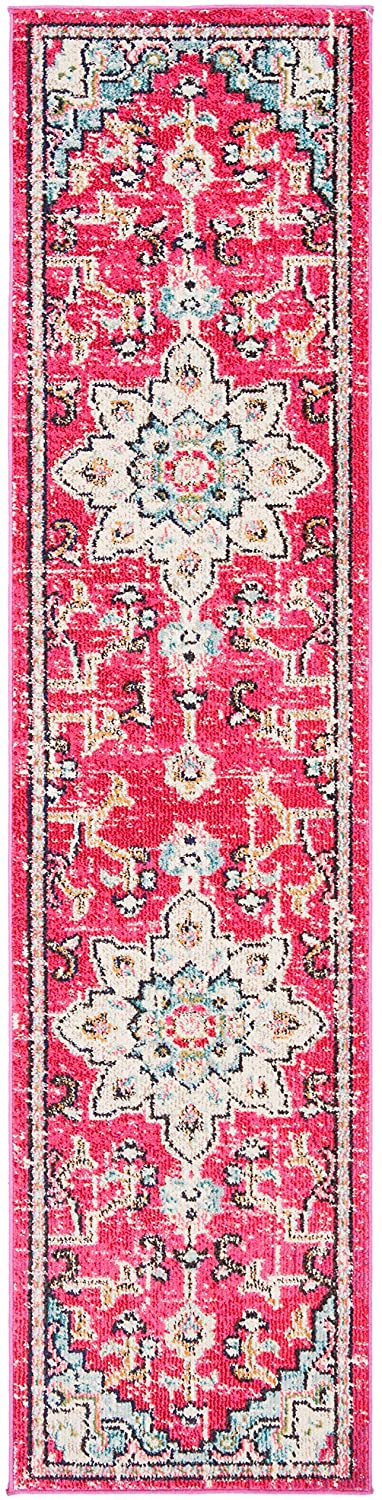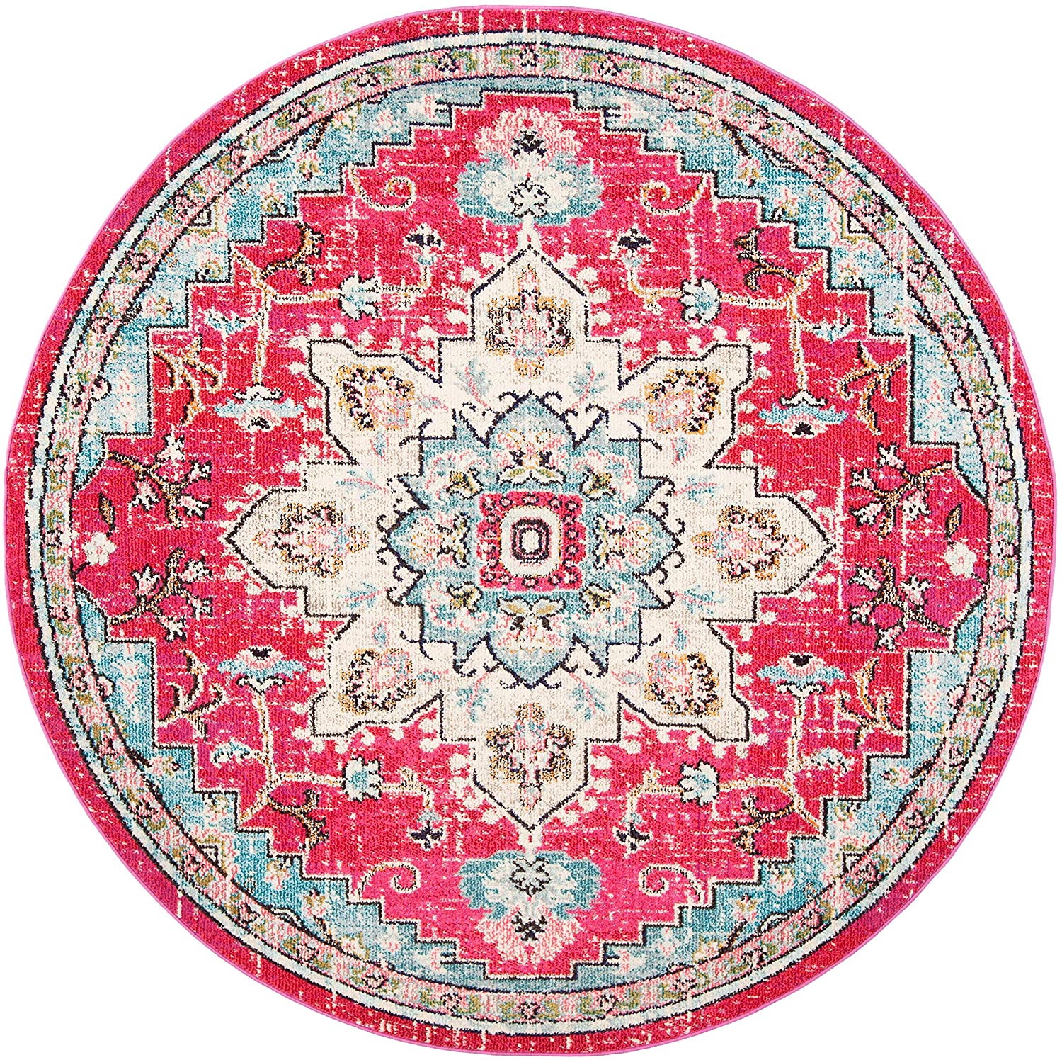 Boho Chic Medallion Distressed Soft Area Rug, Fuchsia / Blue