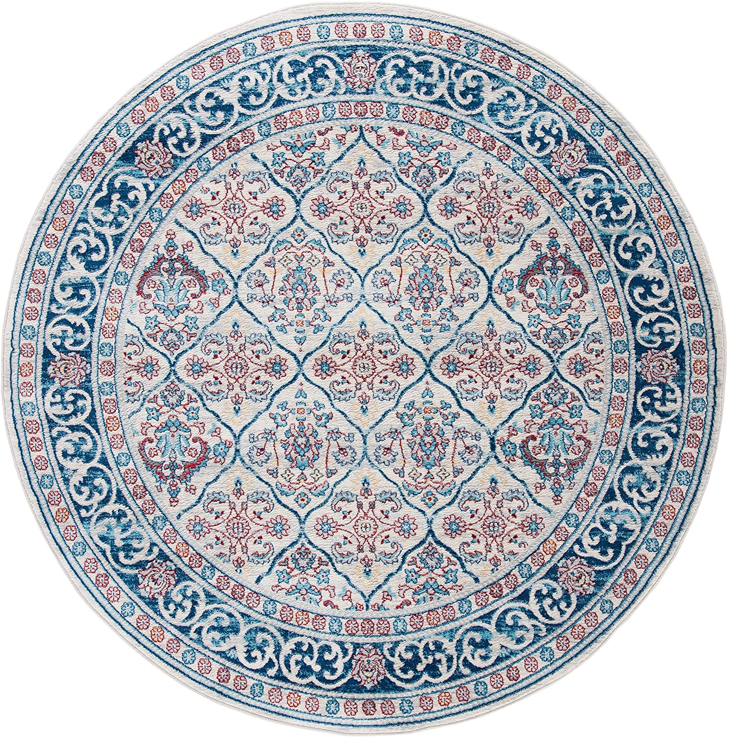 Oriental Damask Trellis Soft Area Rug, Beige / Navy