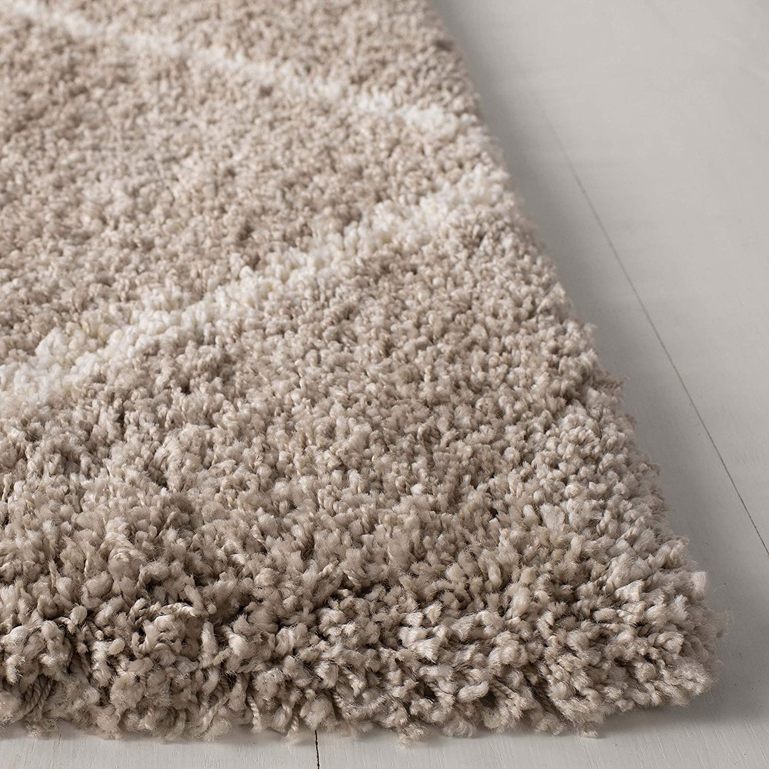 Diamond Trellis Beige/Ivory Soft Plush Shag Area Rug 2-inch Thick