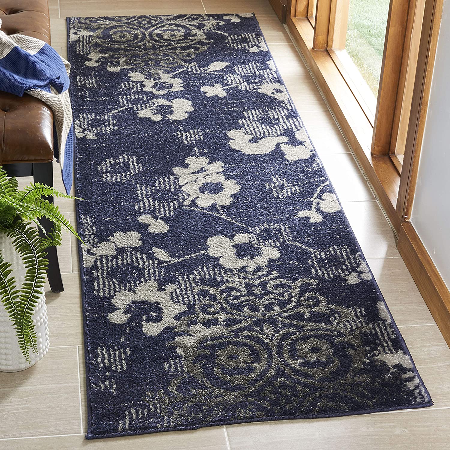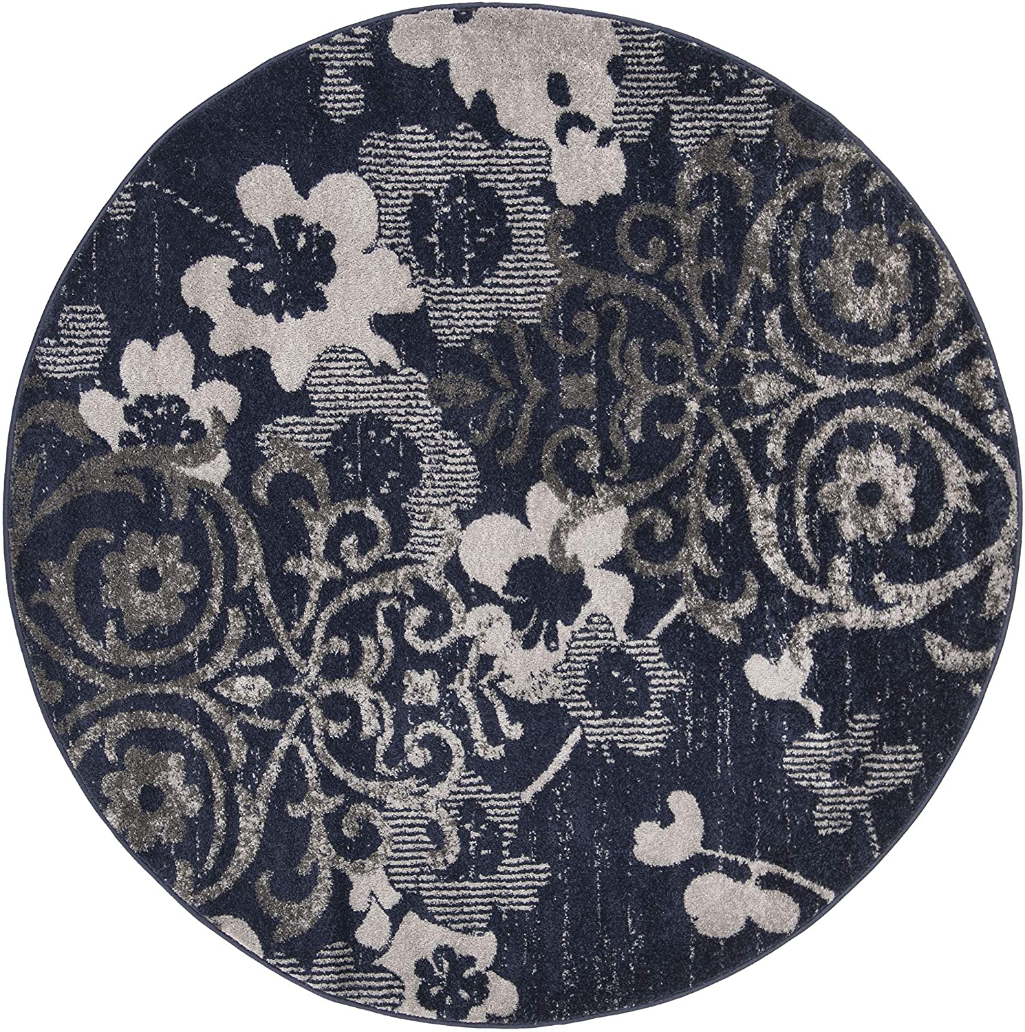 Navy Blue Silver Contemporary Chic Damask Soft Area Rug