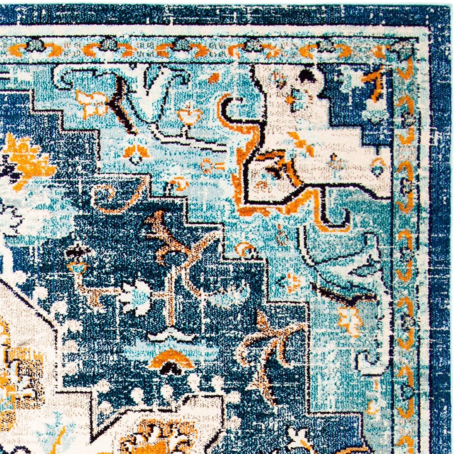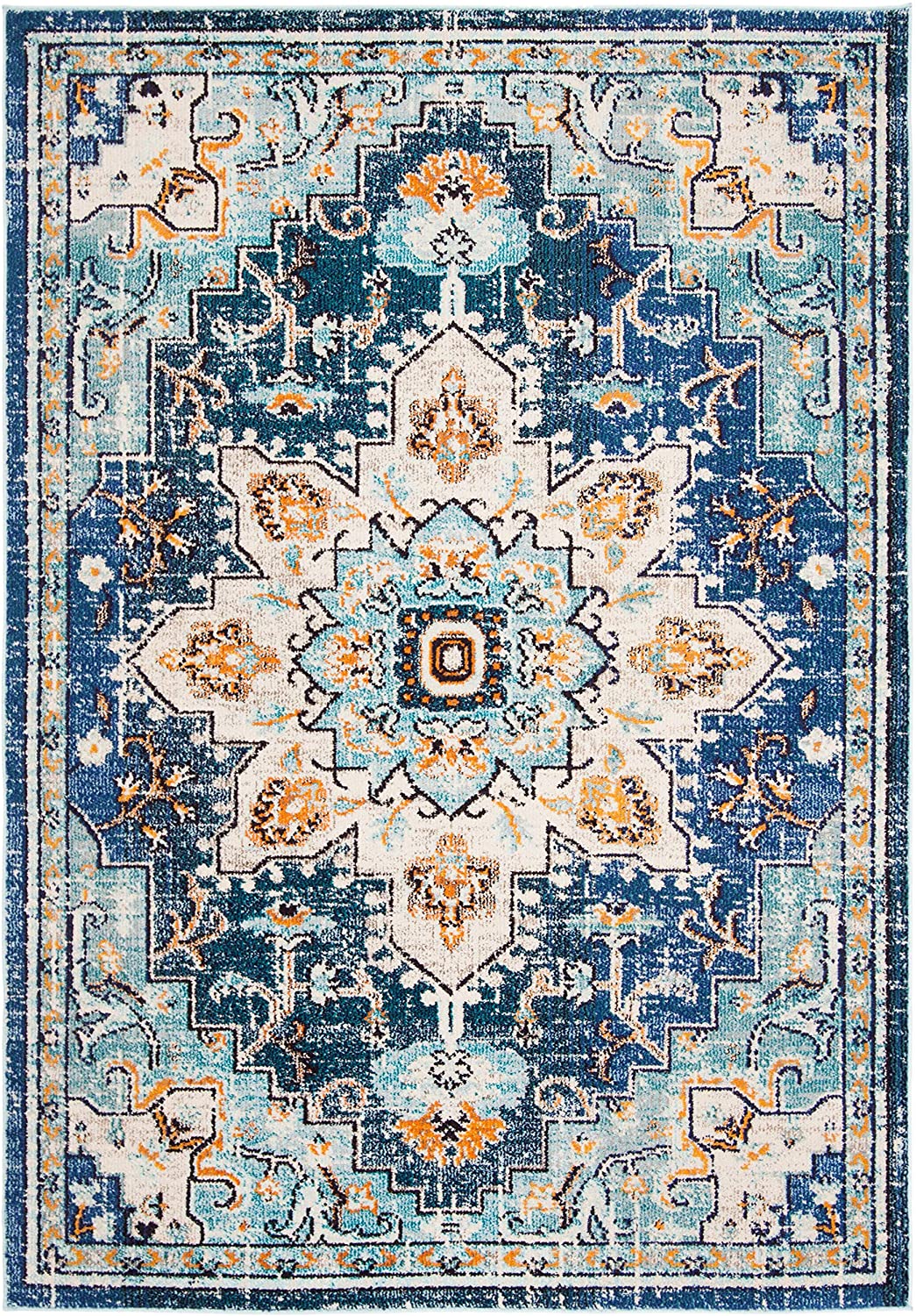 Boho Chic Medallion Distressed Soft Area Rug, Blue / Light Blue