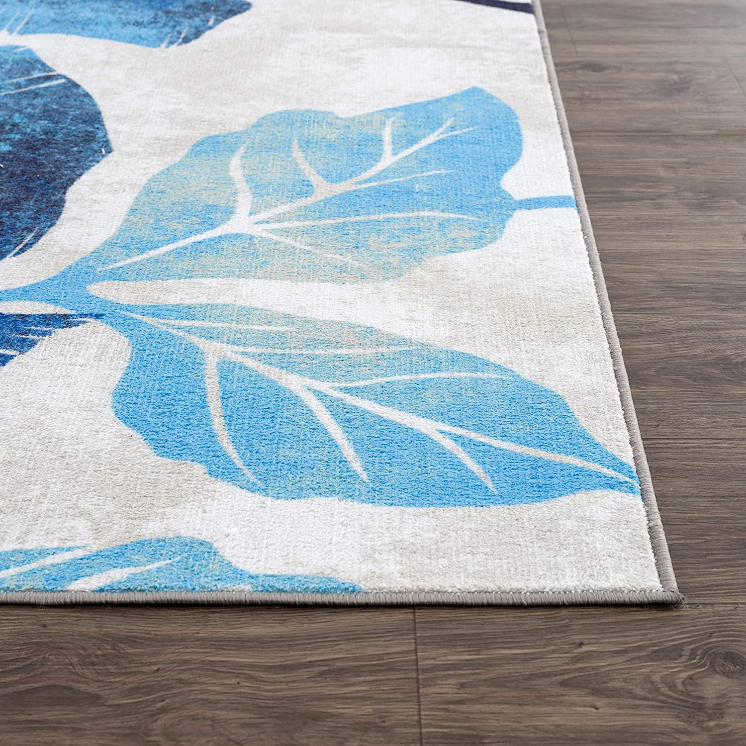 Modern Floral Blue Grey Non Slip Large Flower Area Rug