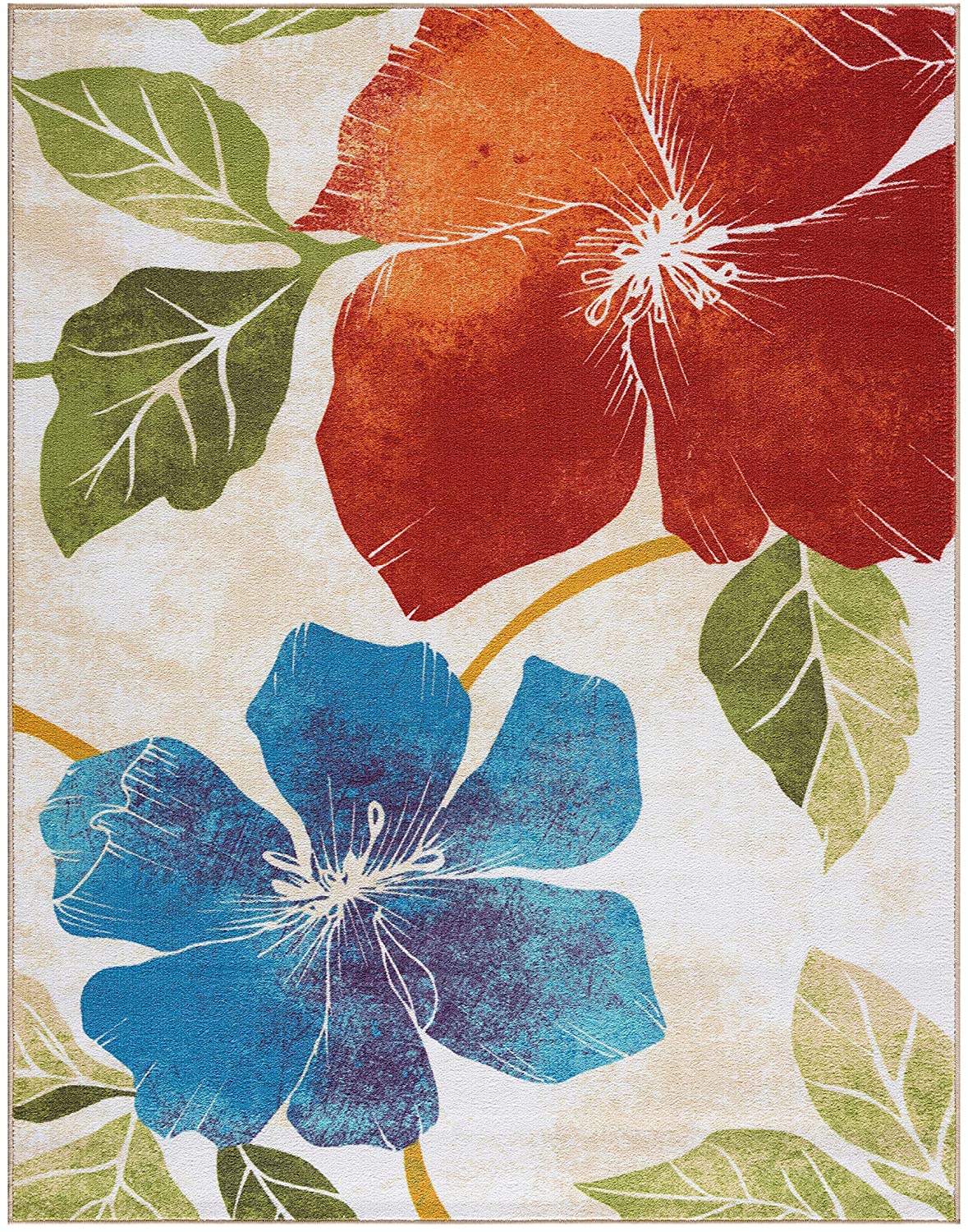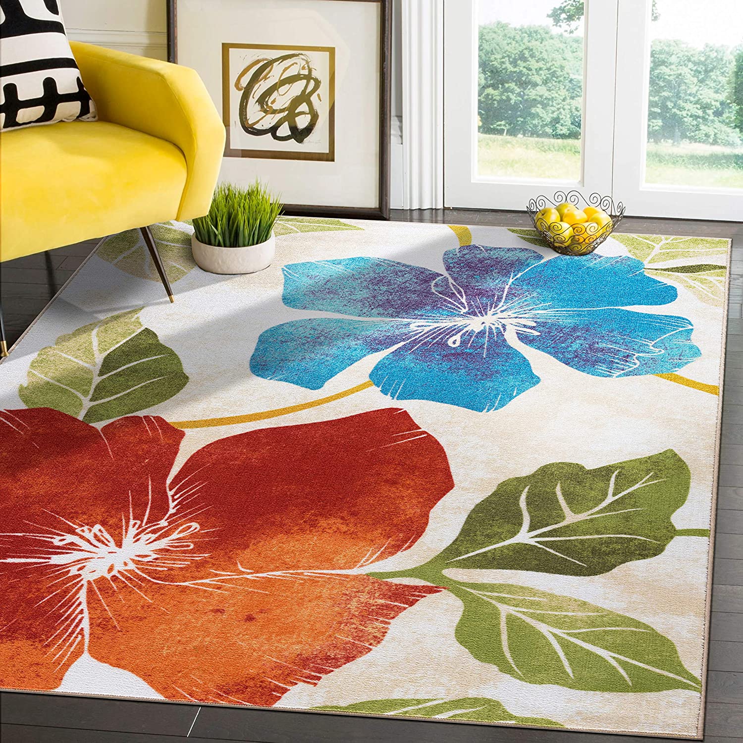 Floral Soft Area Rug - Non Slip Large Flower Carpet for Indoor