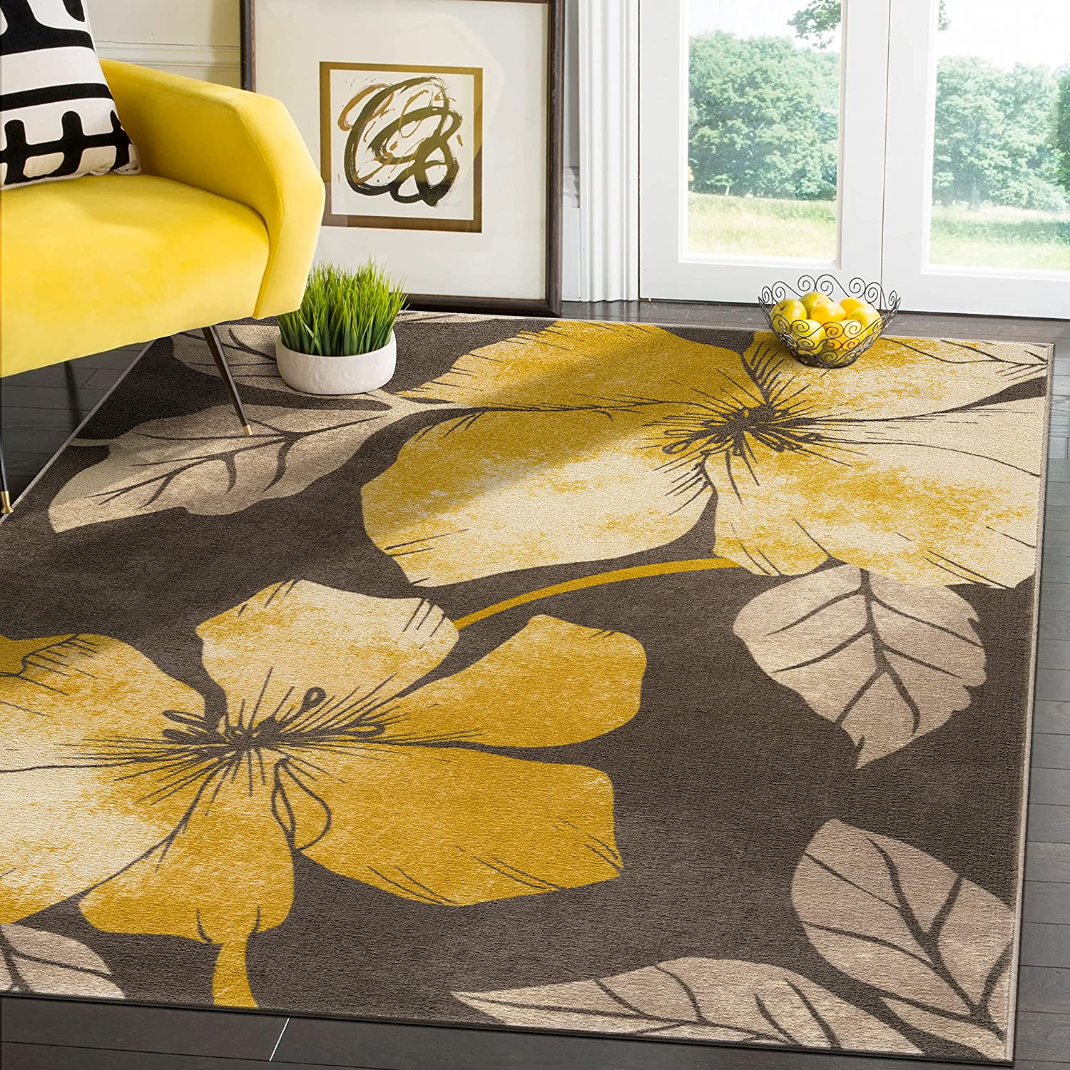 Floral Soft Area Rug - Non Slip Large Flower Carpet for Indoor