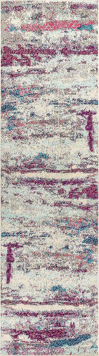 - Combining tones of cream, blue, orange and pink, this rug is a versatile addition to any color scheme
