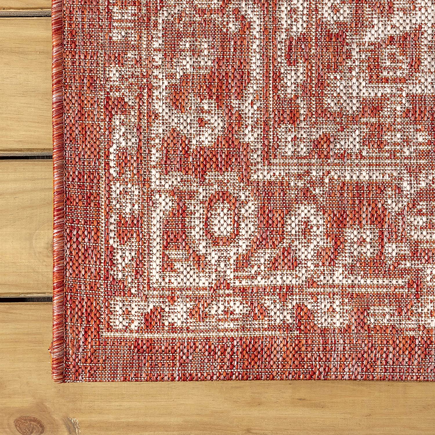 Malta Bohemian Medallion Textured Weave Indoor/Outdoor Red/Taupe Area Rug