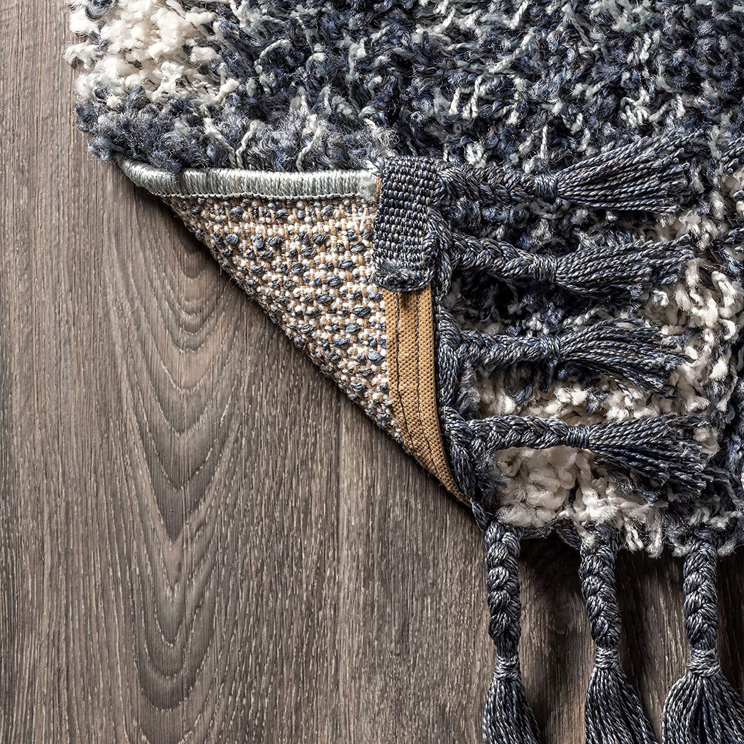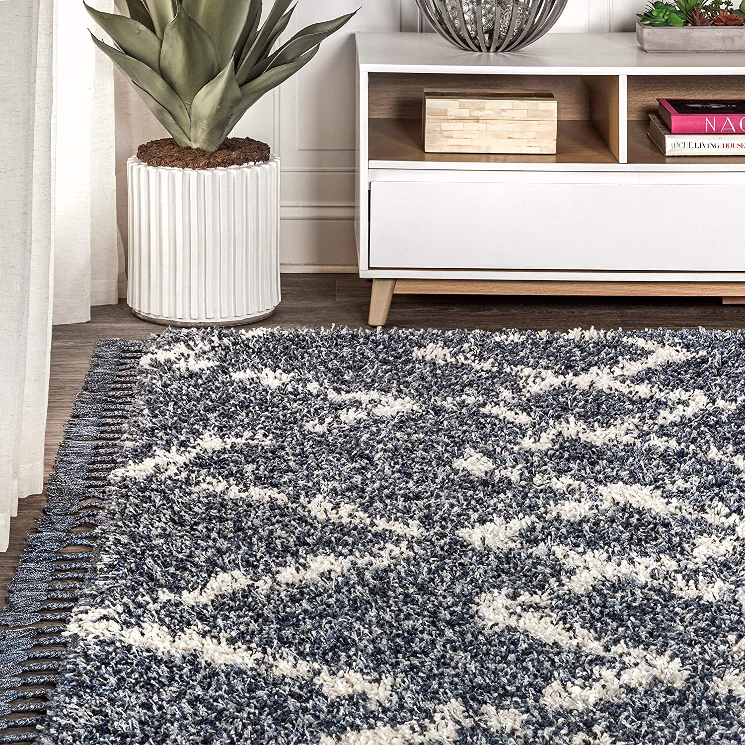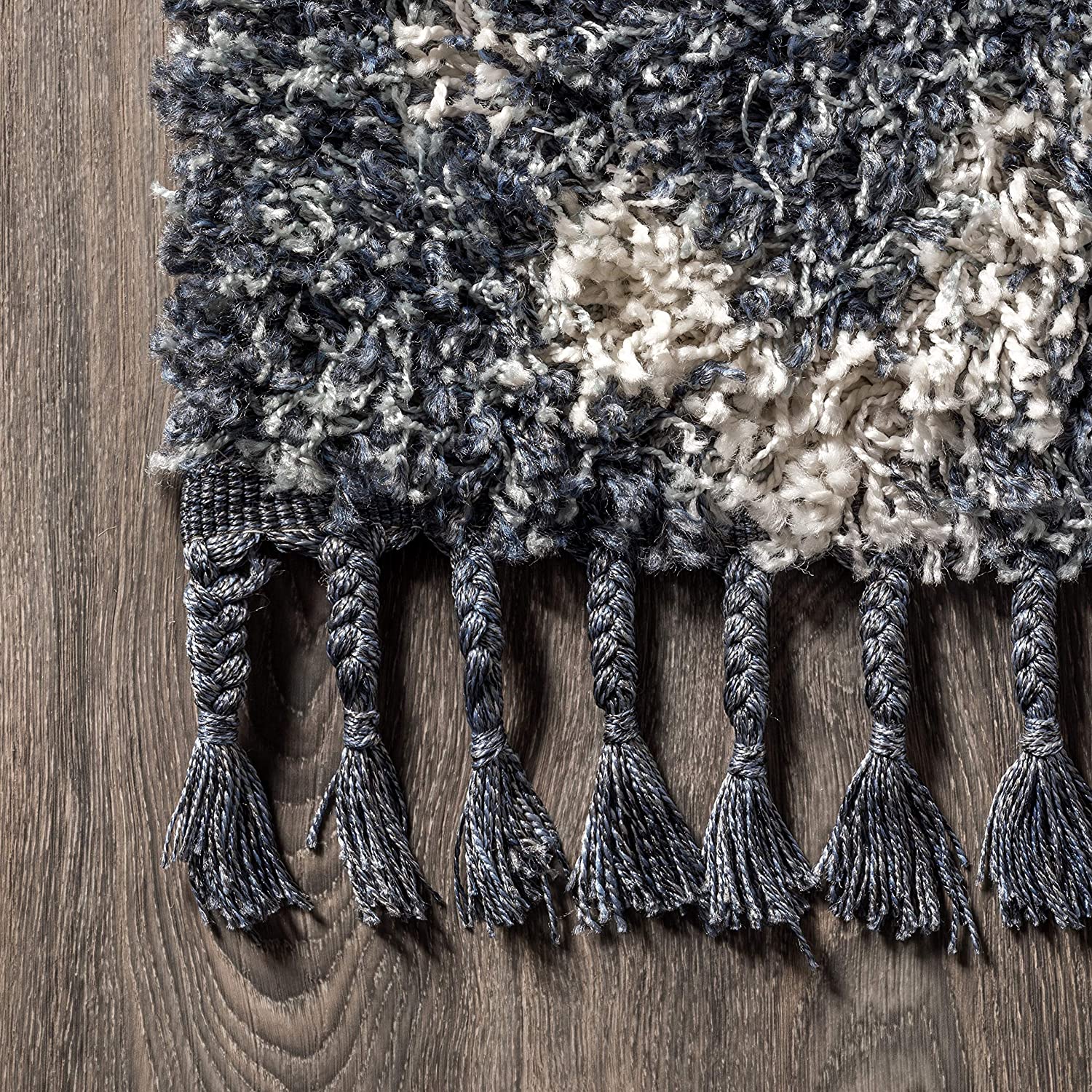 Mercer Plush Tassel Moroccan Tribal Geometric Trellis Denim Blue/Cream Shag Area Rug