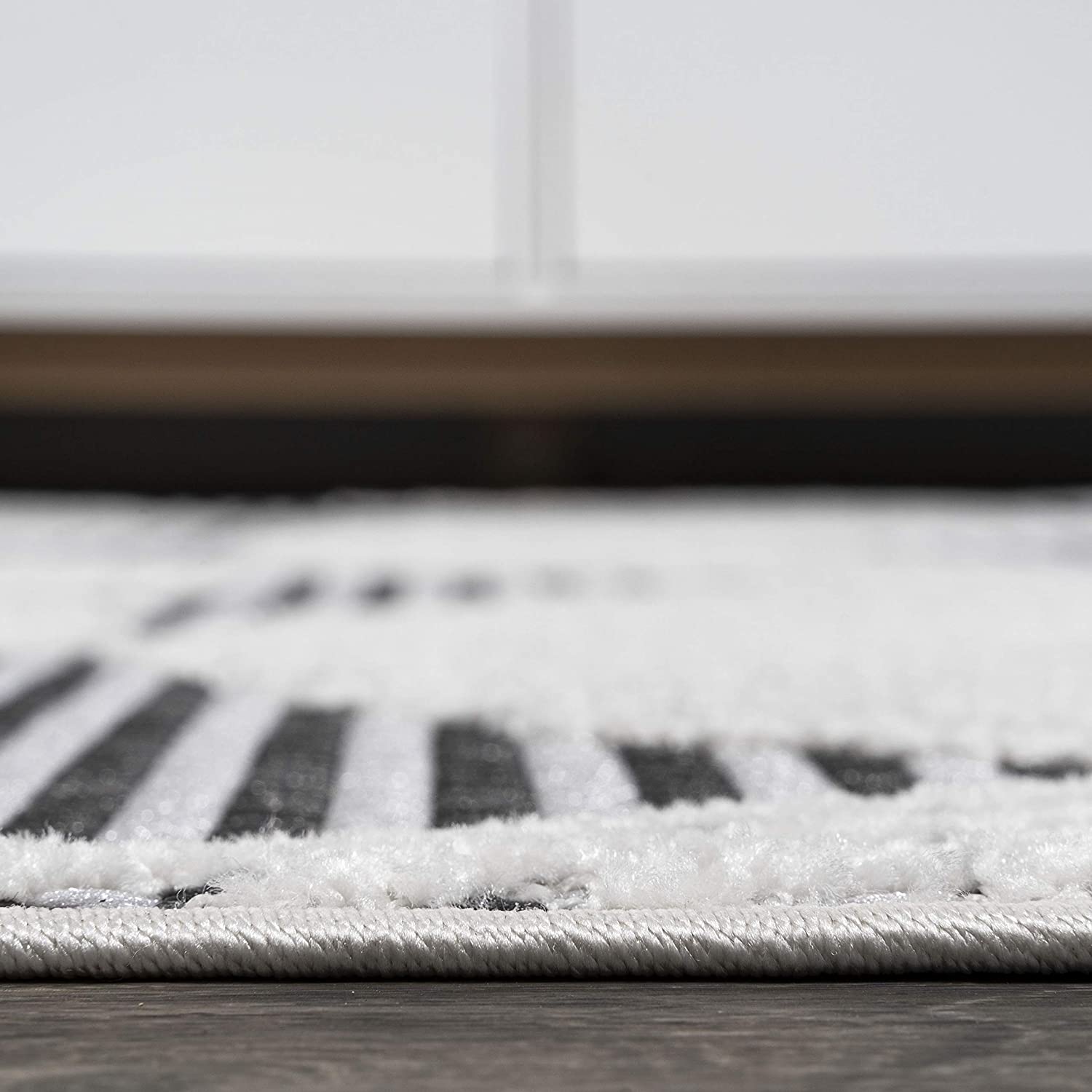- [STAIN-RESISTANT AND PET-FRIENDLY]: This rug is made from synthetic fibers that resist UV fading. The pet-friendly low-pile construction won’t accumulate dirt, and spills clean up easily. It’s been machine-woven so the rug fibers will stay put. When properly cared for, this rug won’t shed fluff into your home.