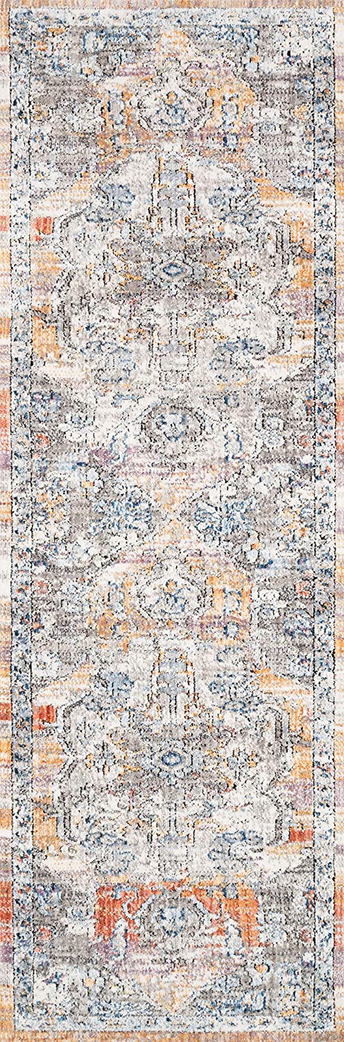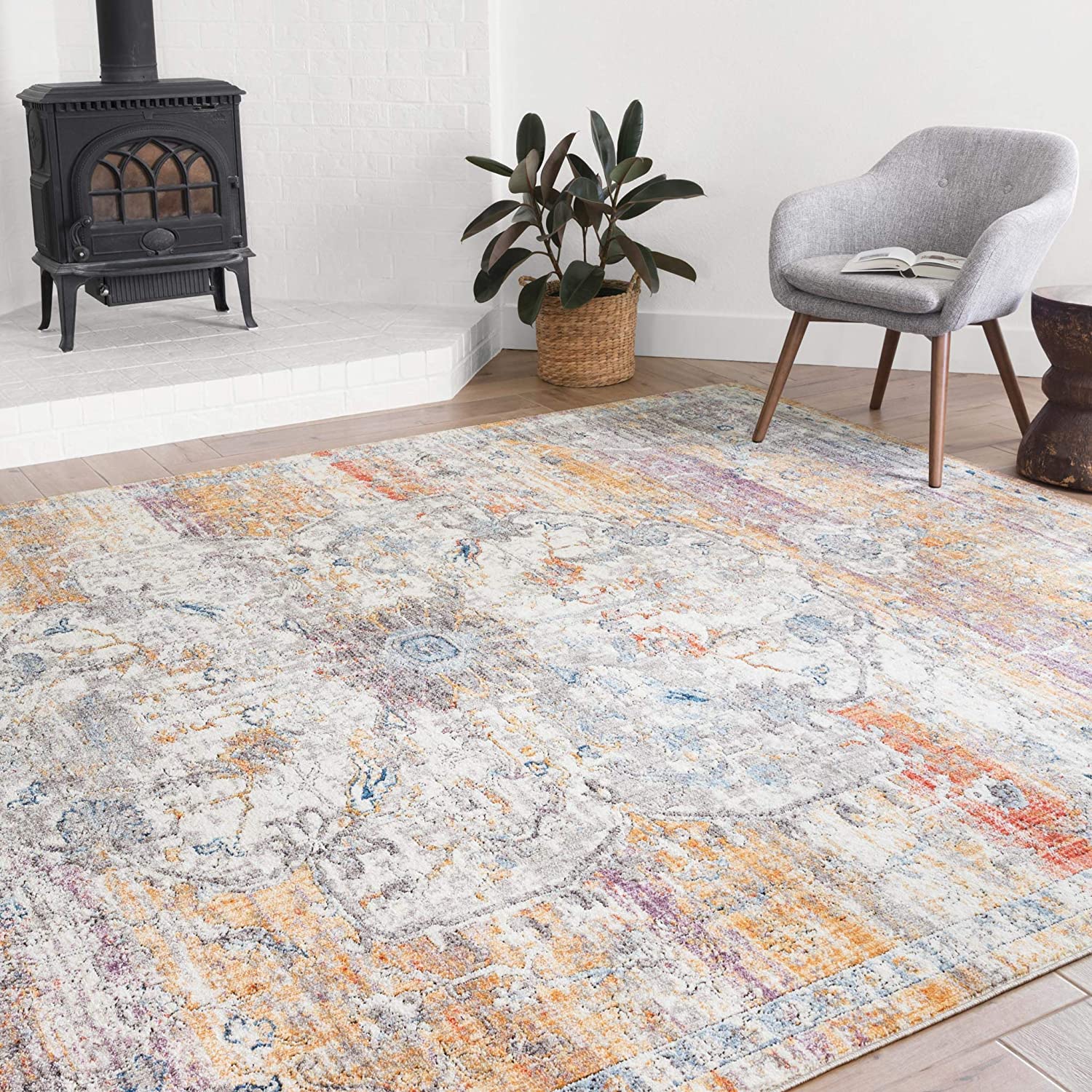 - An Innovative interpretation of a traditional rug design.Bold patterns paired with a colorful distressed apperance.