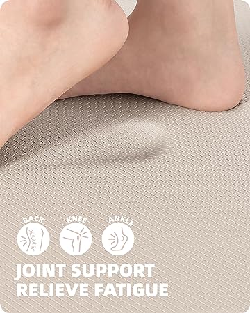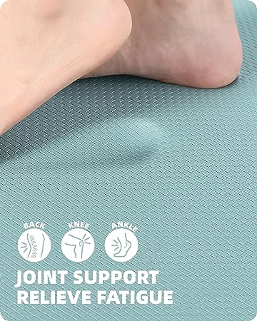 - đ¸ăCUSHIONED SUPPORTă: The design of this memory foam kitchen comfort mat is ergonomic and endure long periods of pressure, It helps reduce the stress you put on your joints and stops overworking your muscles. Anti-fatigue mats are good options for anyone who spends a significant amount of time standing in front of their kitchen sink or counter. If your mother works in the kitchen for a long time, our anti fatigue mats for kitchen floor will be the most perfect mothers day gifts.