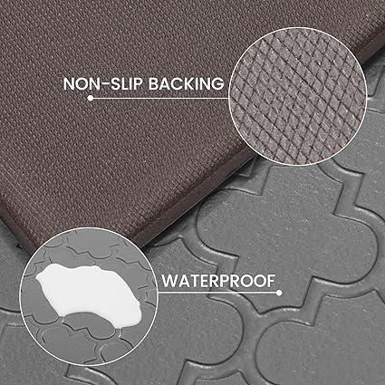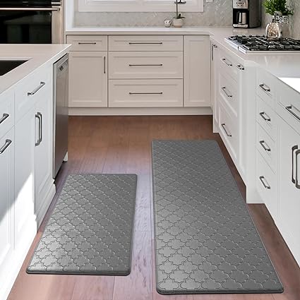 - KITCHEN ESSENTIAL: The kitchen mat set comes with 2 mats. You can place them in front of the sink and stove, not only to protect the floor from water and spills but also to greatly relieve the fatigue from standing for extended periods of time. Additionally, the kitchen floor mat can also serve as a decorative element, adding a touch of style to your kitchen!