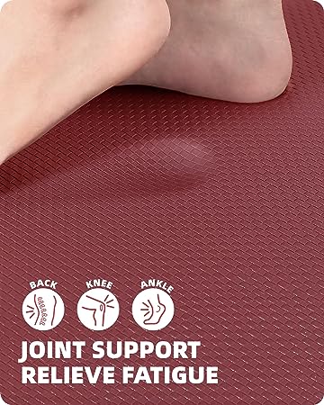 - đ¸ăCUSHIONED SUPPORTă: The design of this memory foam kitchen comfort mat is ergonomic and endure long periods of pressure, It helps reduce the stress you put on your joints and stops overworking your muscles. Anti-fatigue mats are good options for anyone who spends a significant amount of time standing in front of their kitchen sink or counter. If your mother works in the kitchen for a long time, our anti fatigue mats for kitchen floor will be the most perfect mothers day gifts.