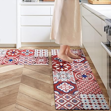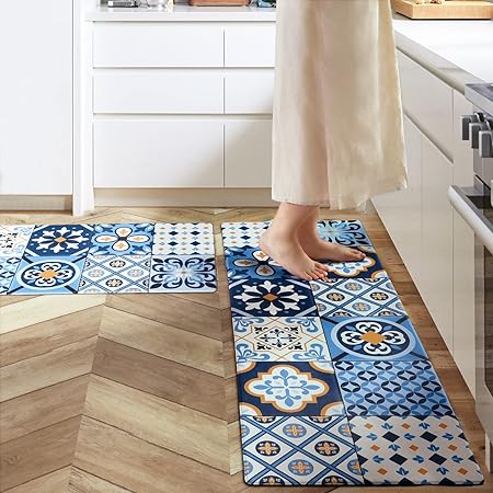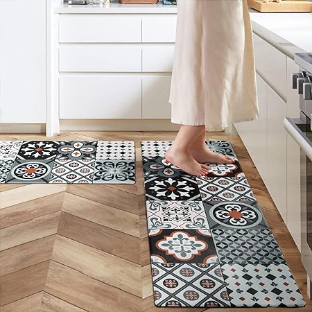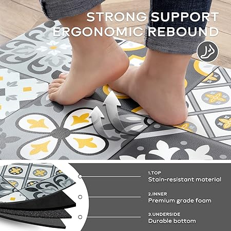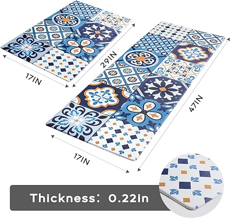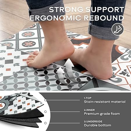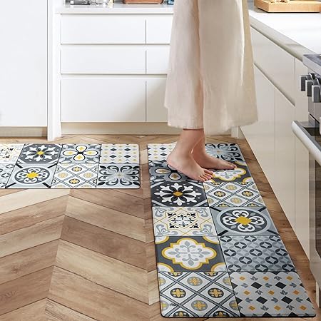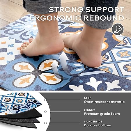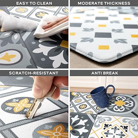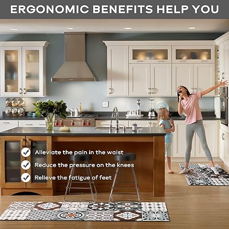 - 【Anti-Fatigue Rug】The anti-fatigue kitchen rug is ergonomically designed. The soft floor mat provides comfortable support, helps to improve blood circulation and posture, and ensures you can stand comfortably in the kitchen or any working place