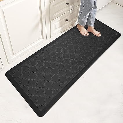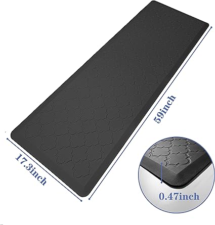 - CUSHIONED SUPPORT & COMFORT: The anti fatigue mat is ergonomically designed to relieve pressure on your feet, knees and lower back. 0.47" thickness kitchen mats for floor can provide comfort when you stand on them for long periods of time to cook or work.