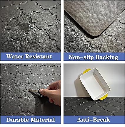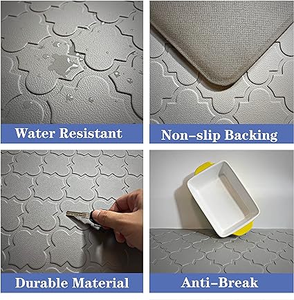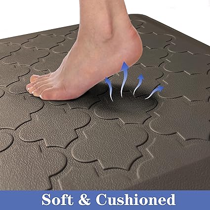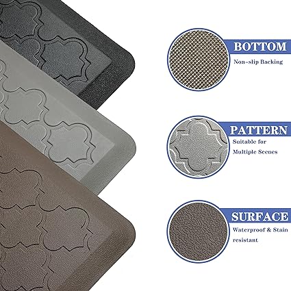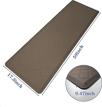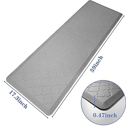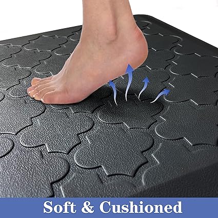 - NON-SLIP & SAFETY: The standing desk mat backing has a non-slip textured design,so you don't have to worry about it sliding on the floor, tile or marble. It is safe for the person standing on the kitchen floor mats cushioned anti fatigue.