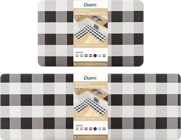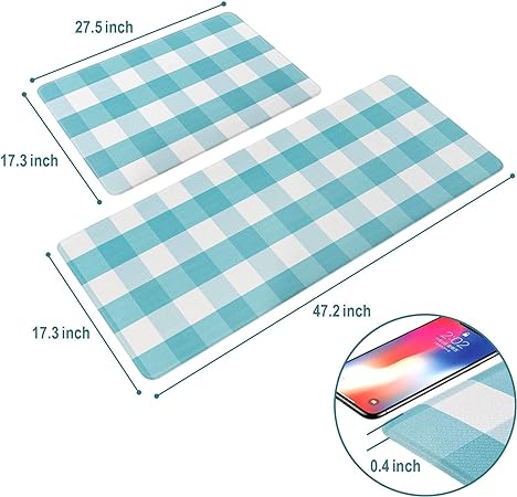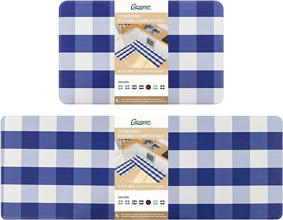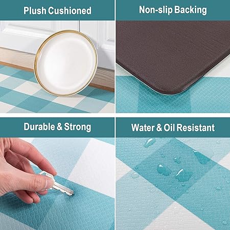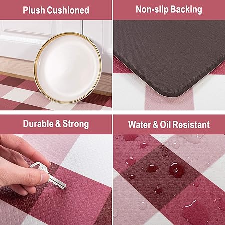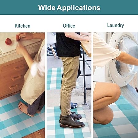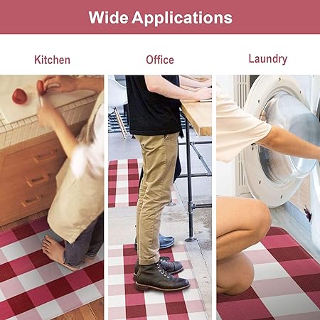 - High Quality & Strong Durable---The kitchen mats are made of premium PVC material that is phathalate-free, latex-free, and odor-free.The eco-friendly mats are constructed with premium strength material will not break down or compress over time. Strong, durable support for high traffic areas.