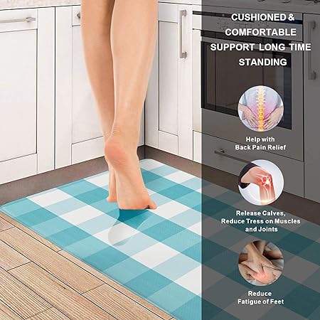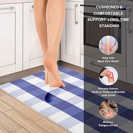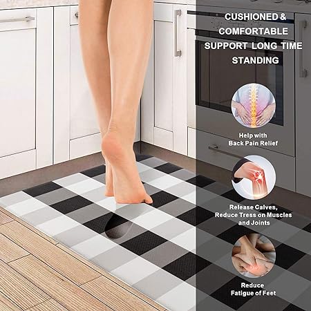 - Cushioned & Comfortable---This anti-fatigue kitchen mats are ergonomically engineered,extra thick mats help immensely with back and joint pain relief with long time standing work. Perfect for home or commercial use in areas such as kitchen shink, office standing desk.