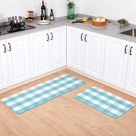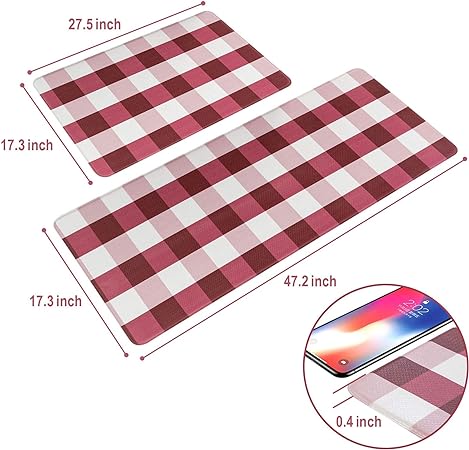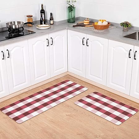 - Classical Buffalo Plaid Check Designed 2 Pieces Set--- Package includes 2-piece rugs. Size: 17.3x47.2 inches and 17.3x27.5 inches (44x120cm+44x70cm), l shape mat set with fashion design prefect to be used in Kitchen. Basket textured surface with buffalo plaid printed prefect fit any room decor.