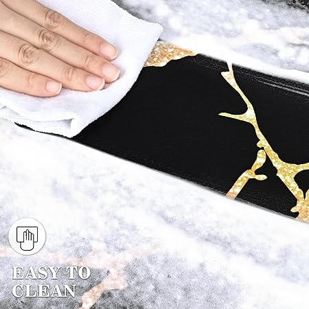 - Non-slip and washable: Our gold black kitchen mats are designed with a non-slip back to prevent the user from slipping, please note that the mats must be placed on a dry floor during use to avoid slipping!