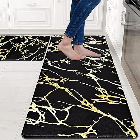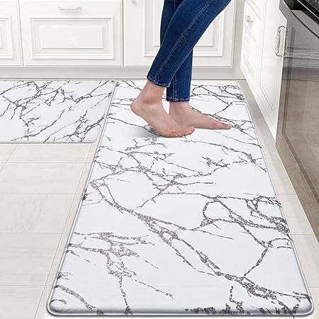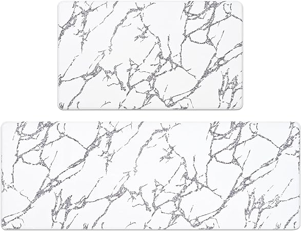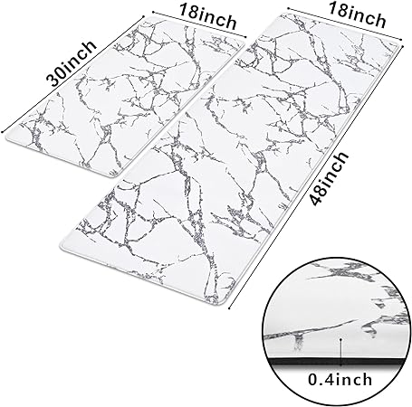 - Anti-fatigue design: Our marble anti-fatigue rug 2PCS kitchen runner provides the perfect balance of soft texture and firm support. 0.4-inch thickness of the mat provides ergonomic support to improve your balance & posture while also reducing lower back pain.