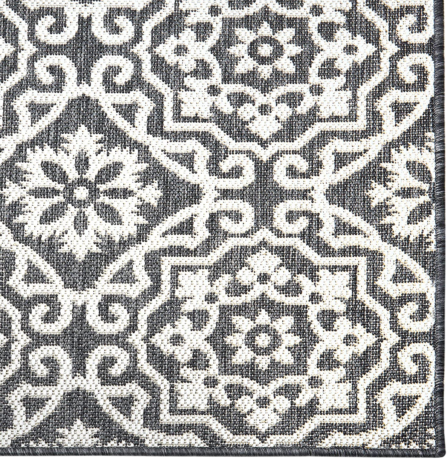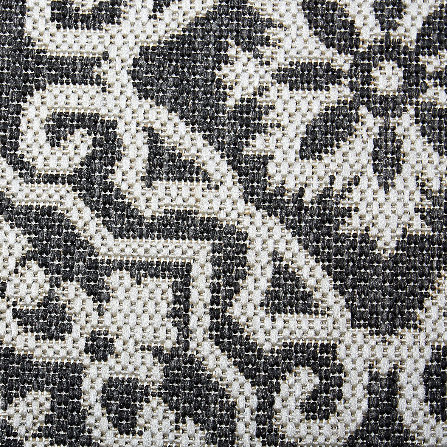 Damask Pattern Black Grey Indoor/Outdoor Area Rug - UV/Weather Resistant