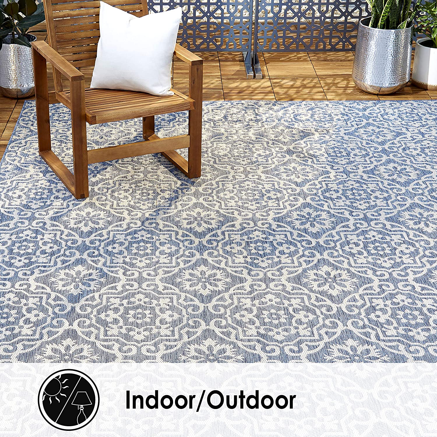 Transform any living space with designer inspired, textured indoor/outdoor woven rugs. This stylish collection offers the perfect combination of durability, fashion and comfort. Adding decorative floor coverings is one of the easiest ways to elevate any entertainment space including patios, decks and screened in porches. Collection includes an eclectic mix of color pallets and visual designs with medallions, Victorian Spades, large borders, repeat shapes and unique distressed looks. Décor friendly colors and timeless design choices compliment any existing décor. Use on your patio with outdoor furniture and accessories to create your personal style. The lightweight, easy to clean polypropylene material is low maintenance and won’t scratch your deck surface. these versatile and functional rugs enhance indoor, high traffic areas in the home such as kitchens, play rooms, mud rooms and more. roll rugs for quick and easy storage throughout the year.