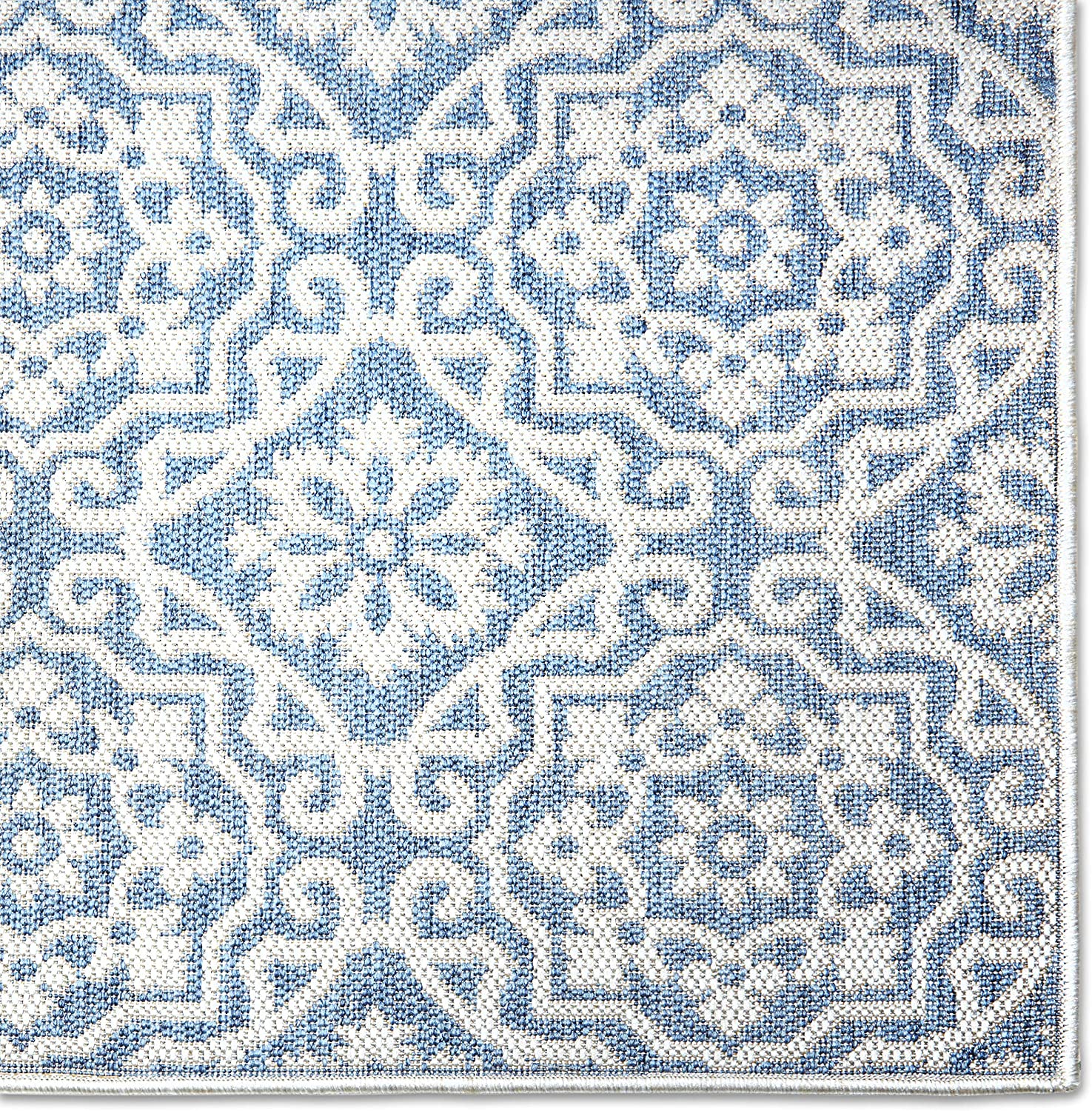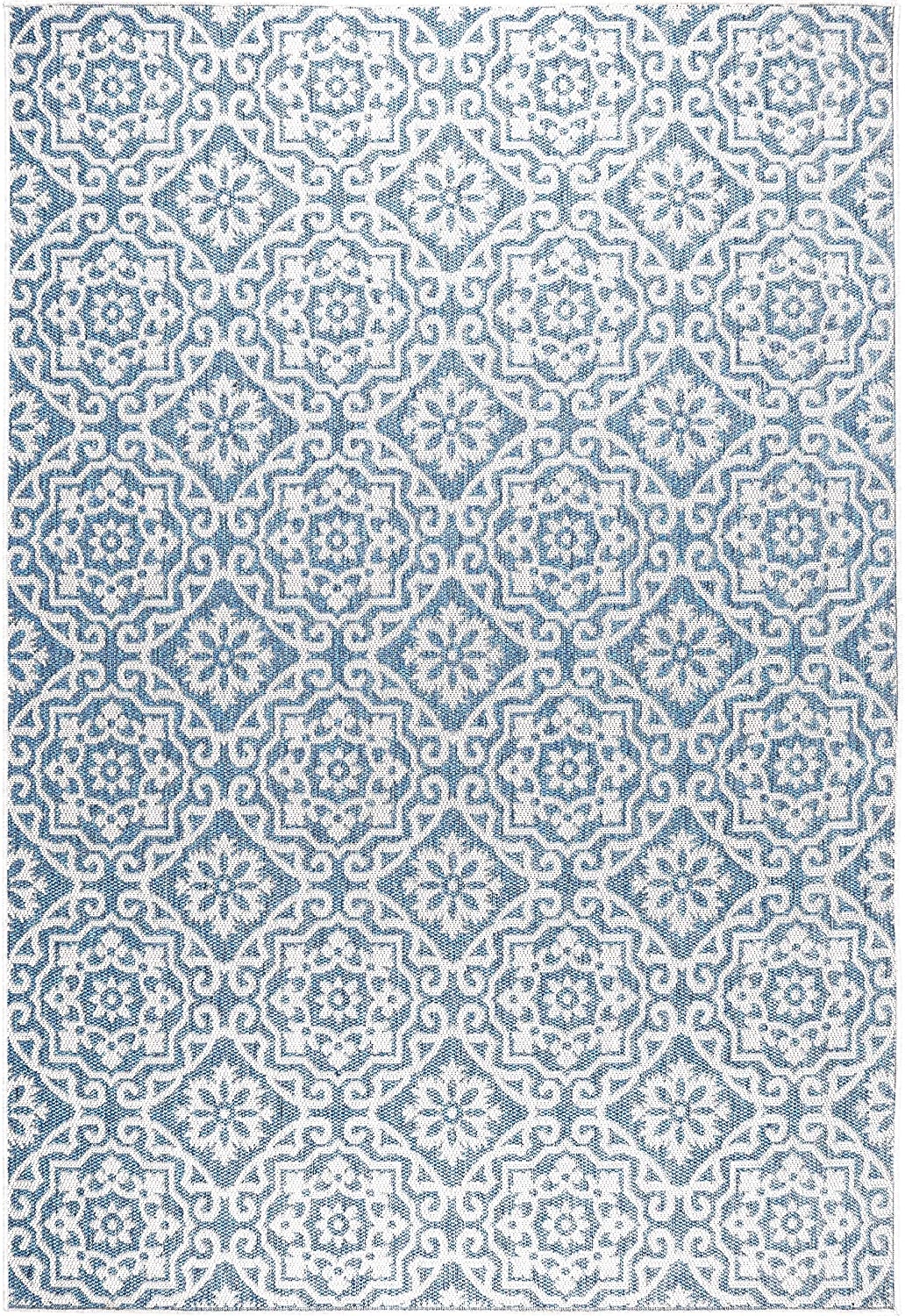 Damask Pattern Blue Grey Indoor/Outdoor Area Rug - UV/Weather Resistant
