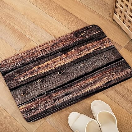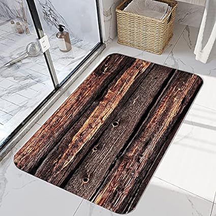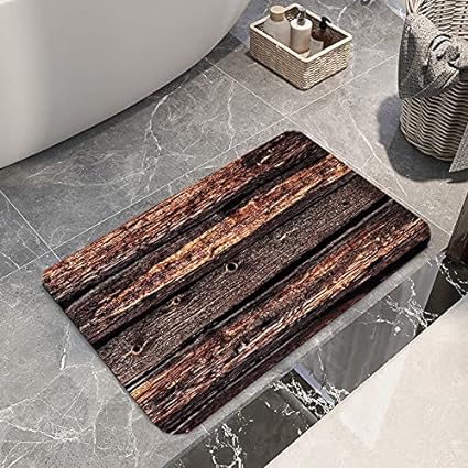 Dark Brown Old Wooden Board Print Memory Foam Bath Rugs and doormats Non Slip Absorbent Super Cozy Flannel Bathroom Rug Carpet 24 x16 inches