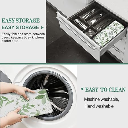 - [Foldable and Hangable]: The drying mat is machine washable, easy to clean and store. Fold and slip into a drawer or cabinet when not in use. The mat can also be hung on the hook with the tape.