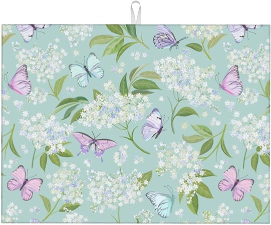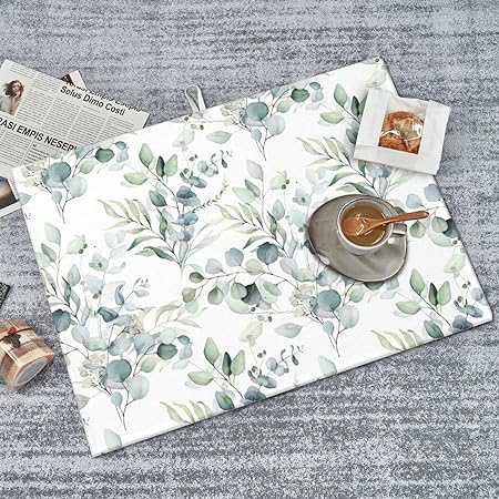 Dish Drying Mat Microfiber for Kitchen Counter Blue and Green Leaves Absorbent Dish Draining Reusable Washable Extra Large 18"x24"