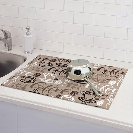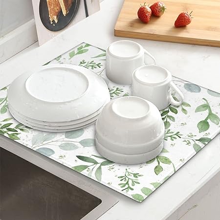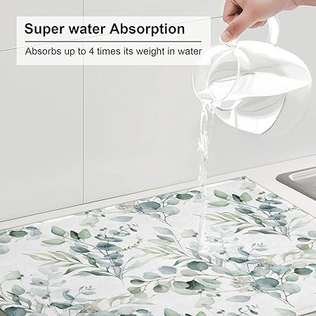 - [Multifunctional]: You can let it catches drips under a dish drying rack to keep the counter dry and clean, or you can place tableware directly on the mat. It can also be used for pet, place it under pet drinking pot to keep the floor dry.Also protects your counter from scratches and scuffs when placed under small appliances.