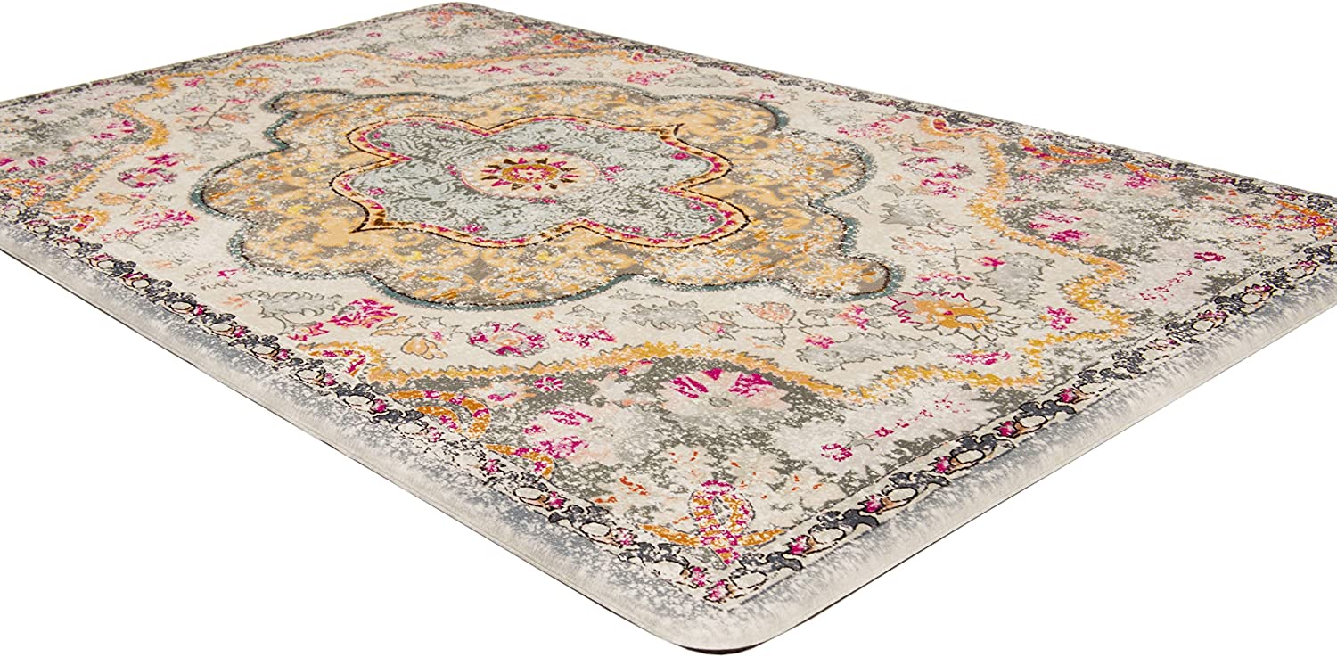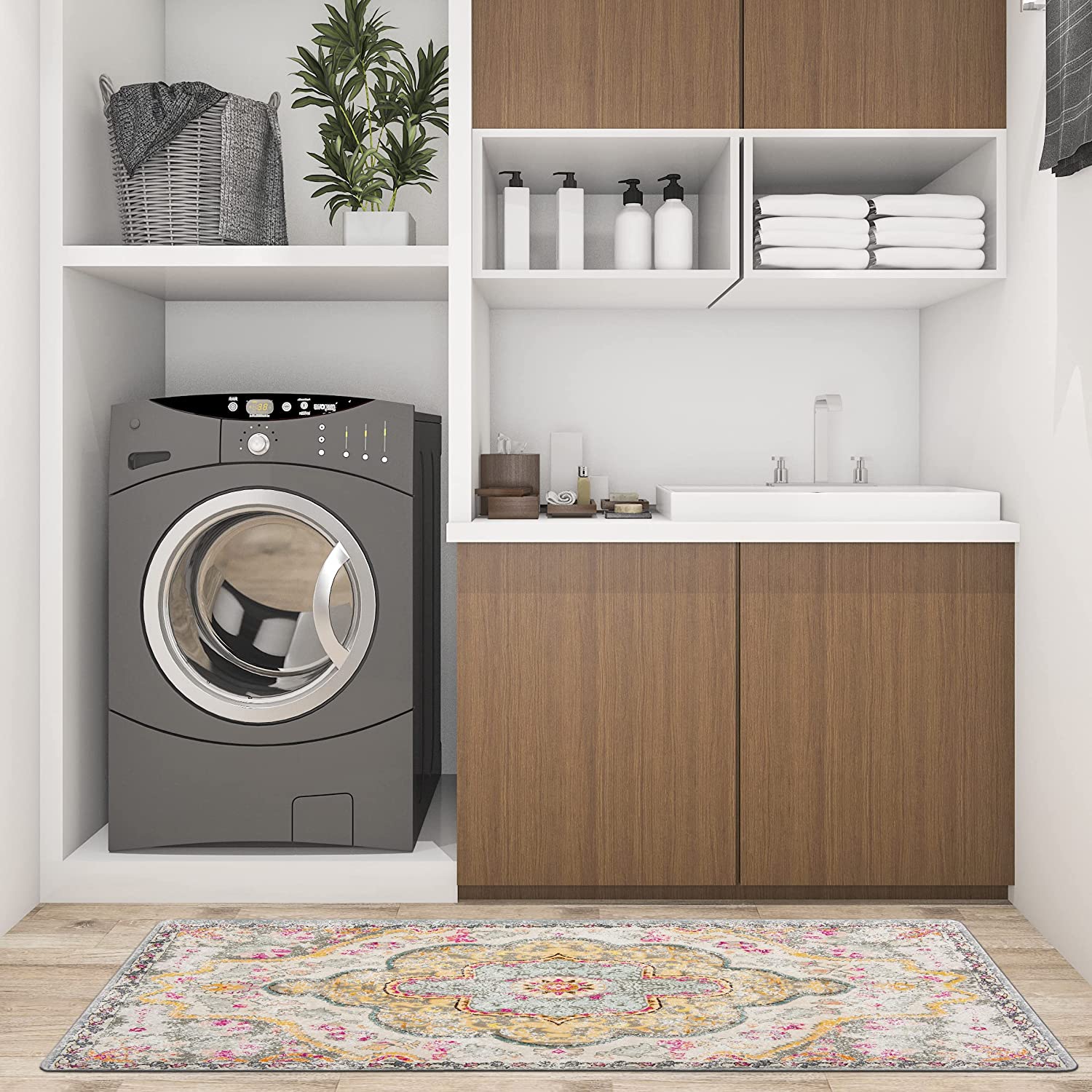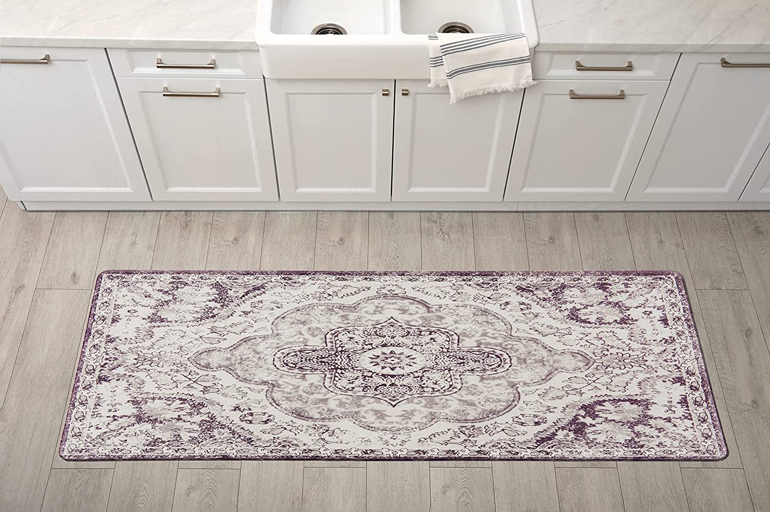 Distressed Bohemian Anti Fatigue Non Slip Stain Resistant Mat - 18" x 47" Cream