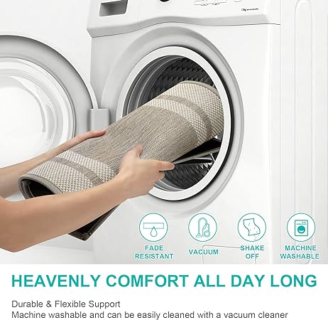 Durable Machine Washable Dirt Trapper Door Mat, Non Slip Absorbent,Low Profile Area Rug for Entrance, Inside, Kitchen, Patio,Laundry Room