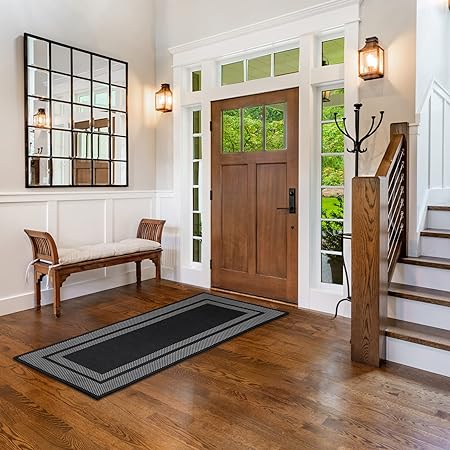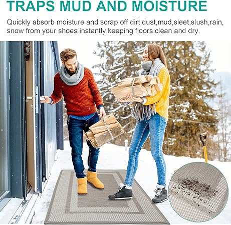 - [TRAP DIRT AND MOISTURE] Upgraded new polyester fiber material, our indoor doormat can quickly absorb moisture and scrap off dirt, water, dust, grit, mud, sand, sleet, grass, slush, rain, snow from your shoes instantly, keeping floors clean and dry