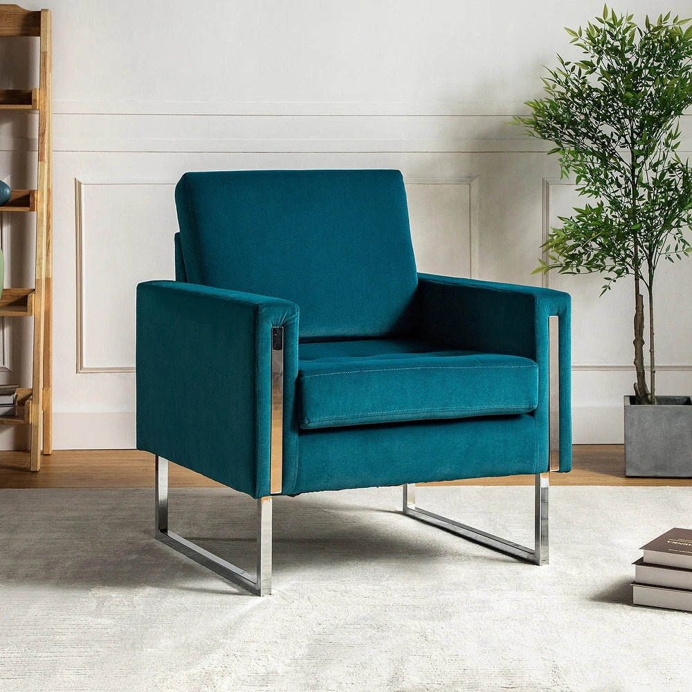 Elastus Modern Comfy Velvet Club Chair with Chic Metal Legs
