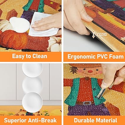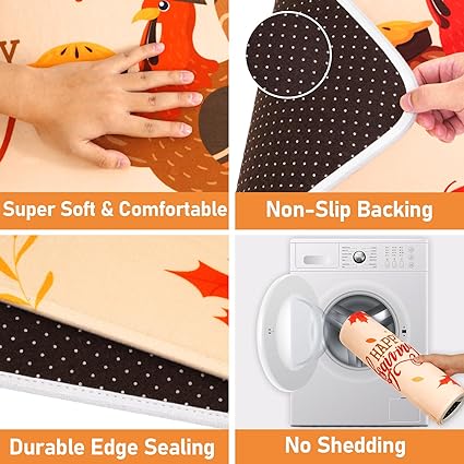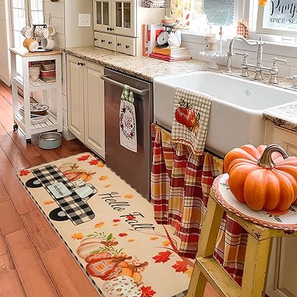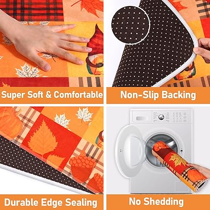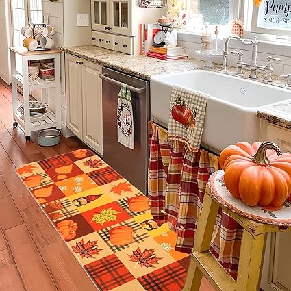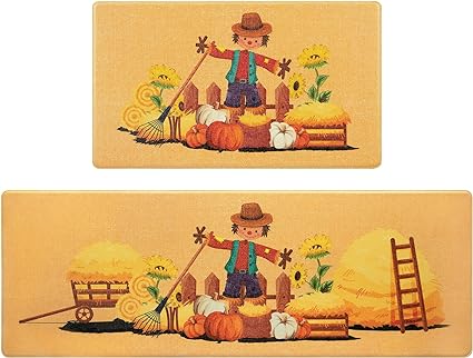 - CUTE FALL DECORATION: Alishomtll Fall kitchen mat is printed with classic Thanksgiving element patterns, such as Scarecrow Pumpkin SunFlower, you can very easily decorate your kitchen as a Thanksgiving themed room to host a Halloween party to have a wonderful and unforgettable Thanksgiving with your family and friends.