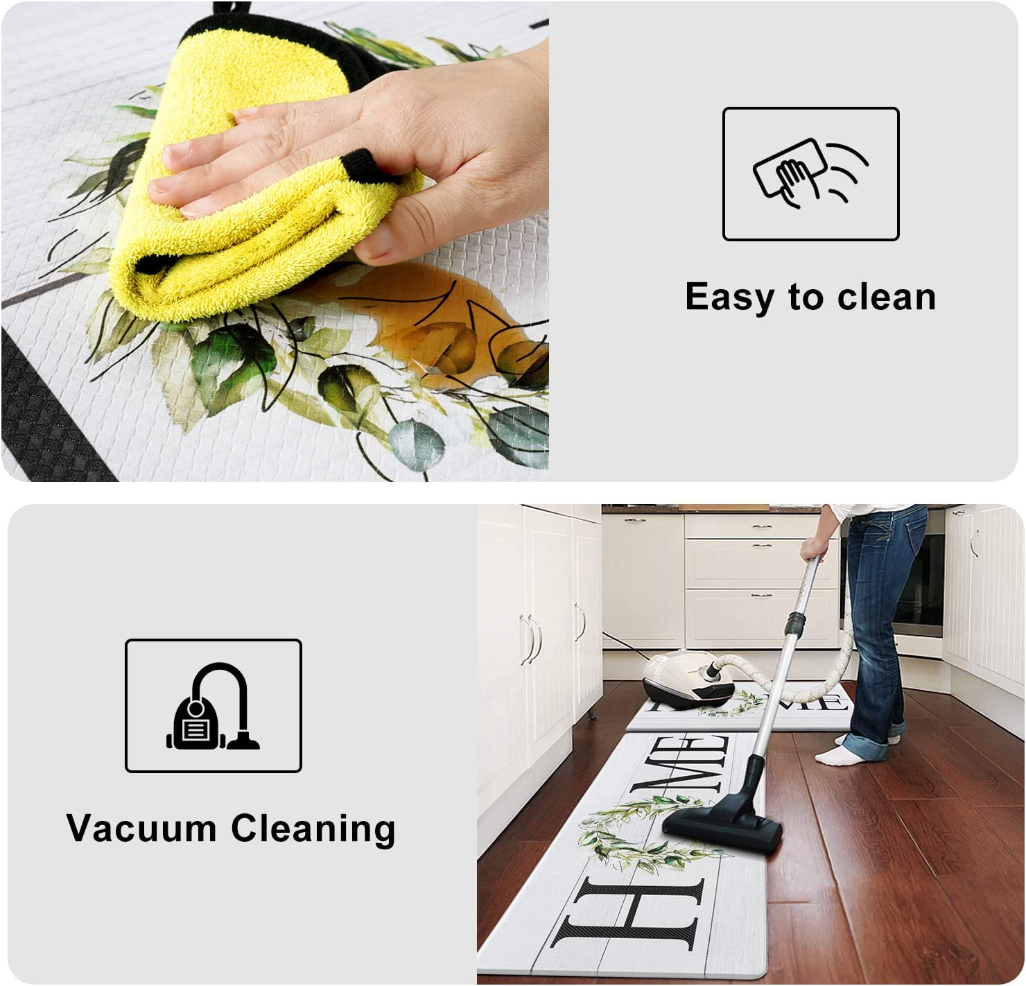 - Easy Clean & Waterproof:The soft kitchen rugs is stain resistant,waterproof and easily cleaned.Simply wipe the floor mat with a damp cloth or sponge or use a hand-held vacuum as needed,save your time and energy.