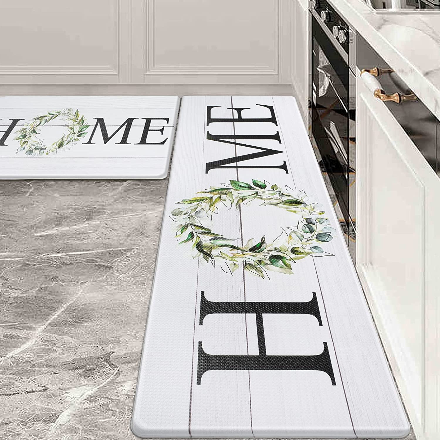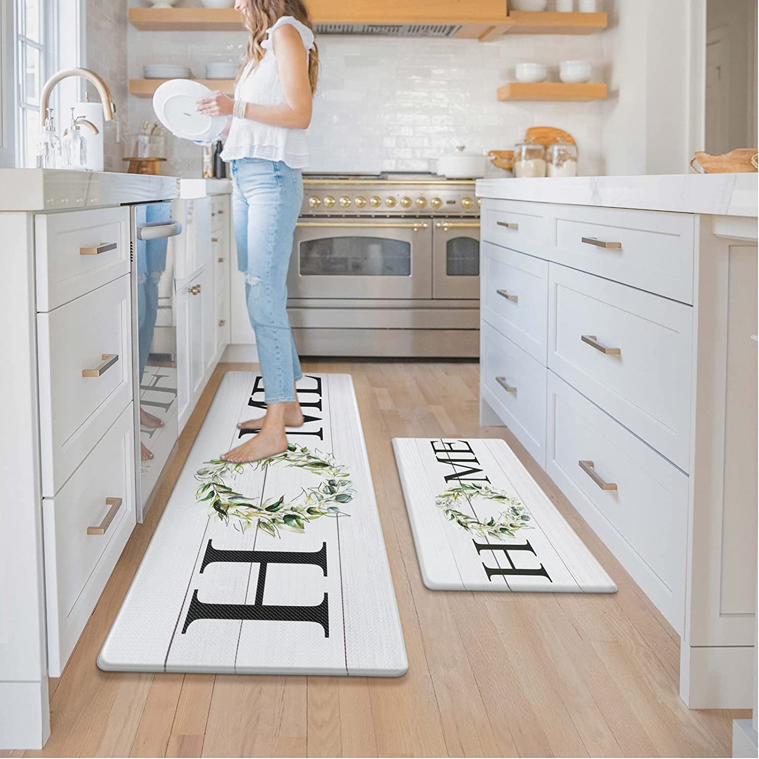 - Versatile:KIMODE provide Home letter Design kitchen rug sets to match your home decor.Soft thick foam provides ample support for standing in kitchen sink,laundry room, office,bathroom,dinning room,or any other high-traffic aera.