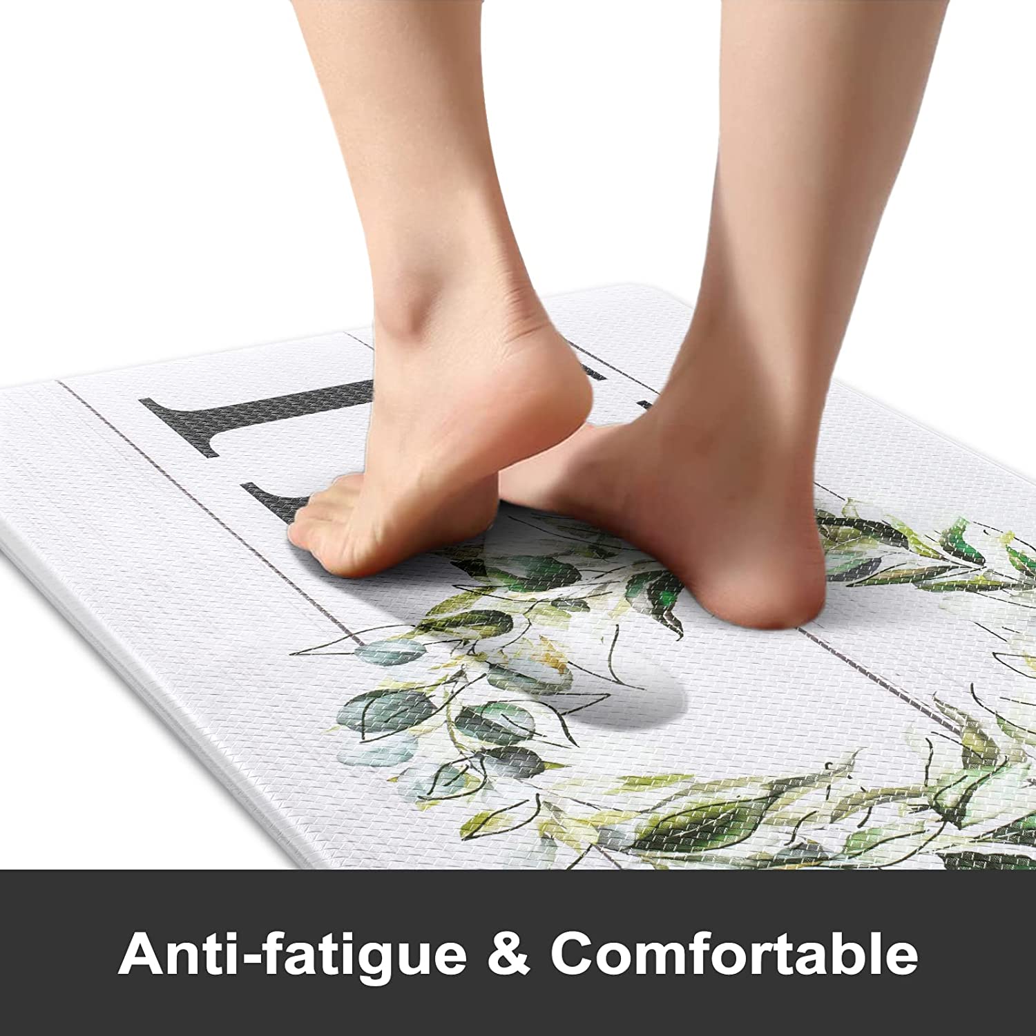 - Comfort Anti-fatigue Kitchen Mats:0.47inch (12mm) extra thick anti fatigue farmhouse Home kitchen sink mat are sure to provide cushion on your feet, knees, lower back, and joints for standing.Feel comfortable like walking on a firm but soft cloud when you are cooking in kitchen or working at your standing desk.