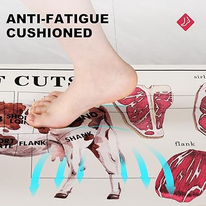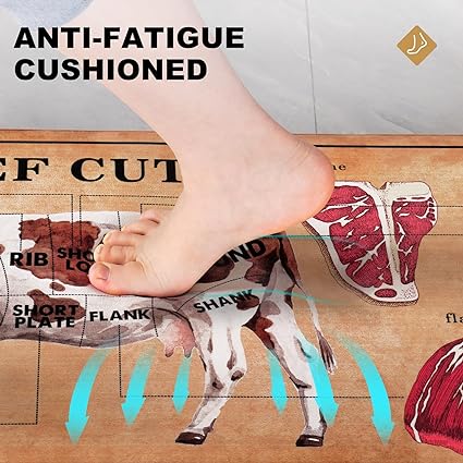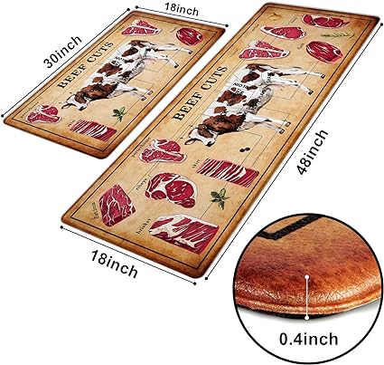 Farmhouse Kitchen Mat 2 PCS, 18'' x 48'' + 18'' x 30'', Beef Cuts